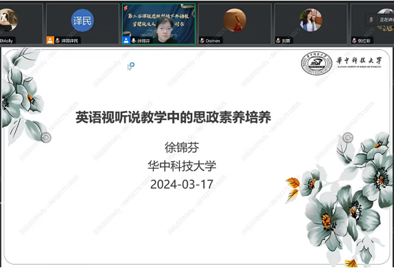 3月17日,在分中心的协助下,第二届课程思政视域下外语教学建设及人才培养研讨会成功举办。会议由华中师范大学外国语学院、山东师范大学外国语学院大中小一体化多语种课程思政工作室及“以语载道”大学英语课程思政工作室、上海交通大学外国语学院外语课程思政中心联合主办,译国译民集团承办,以融媒体线上直播的方式,通过主旨报告、课程思政示范、案例展示的形式,从教学理念、教学目标、教学内容、教学方式和教学评价等方面思考和探索在课程思政视域下的外语课程建设及人才培养方案。两天的时间内,逾4000人次聆听了线上讲座并积极参与互动,获得了与会老师及同学们的一致好评。