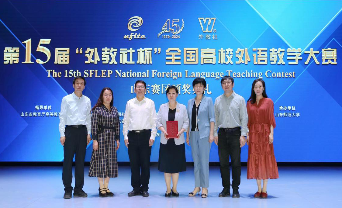 2024年5月11-12日,第十五屆“外教社杯”全国高校外语教学大赛山东分赛区决赛在我校成功举办,我院大学外语教学部高燕副教授带领其团队经过单元教学说课、课堂教学展示、现场就所给材料说课和回答评委提问等复赛和决赛环节的激烈角逐,获得山东省大学英语组第一名的好成绩。