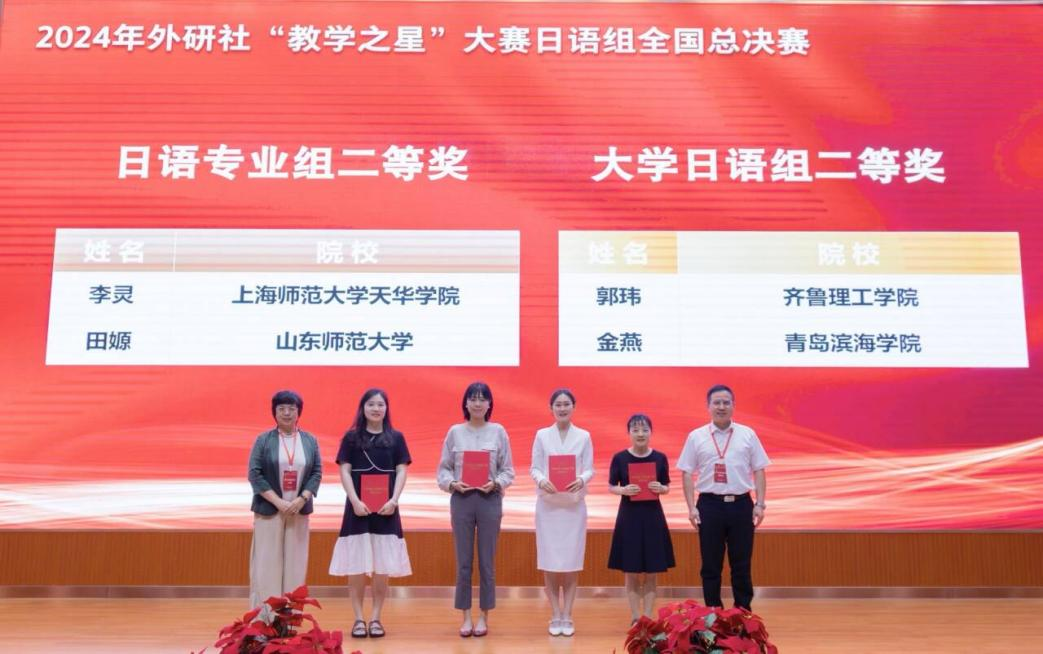 日语系田嫄副教授(左三)获得2024年外研社“教学之星”大赛日语组全国总决赛二等奖