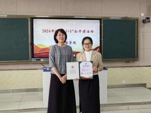 校级督导员王金娥教授为俄语系韩悦老师授予荣誉证书