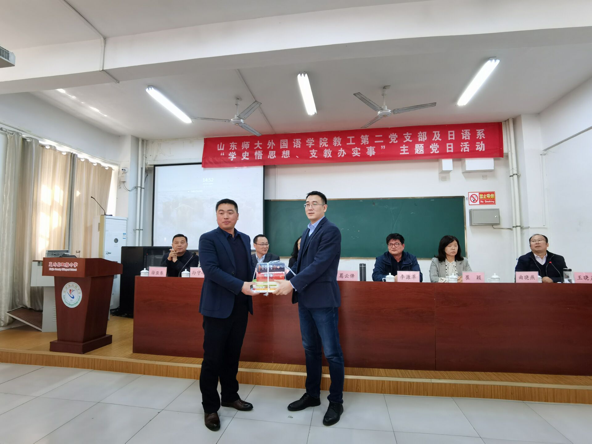 为更好地关心支持、对接服务省派第一书记工作,开展教育帮扶,山东师范大学外国语学院教工第二党支部联合日语系于2021年3月21日走访慰问第一书记工作活动,看望学校派驻夏津县第一书记,并与夏津一中、夏津双语中学开展“学史悟思想、支教办实事”日语教学对口帮扶主题党日活动。