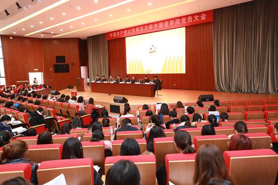 为认真贯彻落实党的十九大及十九届二中、三中、四中全会精神和习近平新时代中国特色社会主义思想,进一步明确学院党委下一步的工作思路和建设目标,不断加强党的政治建设、思想建设、组织建设、作风建设和纪律建设,根据学校党委统一部署,11月28日下午14时,中国共产党山东师范大学外国语学院委员会在长清湖校区文昌楼西一层报告厅隆重召开党员大会。山东师范大学党委常委、校纪委书记、省监委驻山东师范大学监察专员姚东方同志,学校督查督办工作办公室主任昌兵同志出席本次会议。王卓院长、李光贞教授等党外教师代表应邀列席大会。