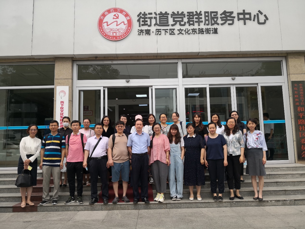 在中国共产党建党100周年之际,为丰富党史学习教育,了解并学习社会其他行业基层党组织在党建工作中的先进经验和已有成绩,2021年6月10日下午,外院教工第一和大外支部的党员教师在学院党委副书记张京国带领下,走进济南市历下区文化东路街道和平路社区党群活动中心,进行党建工作交流并去社区实地参观与调研。