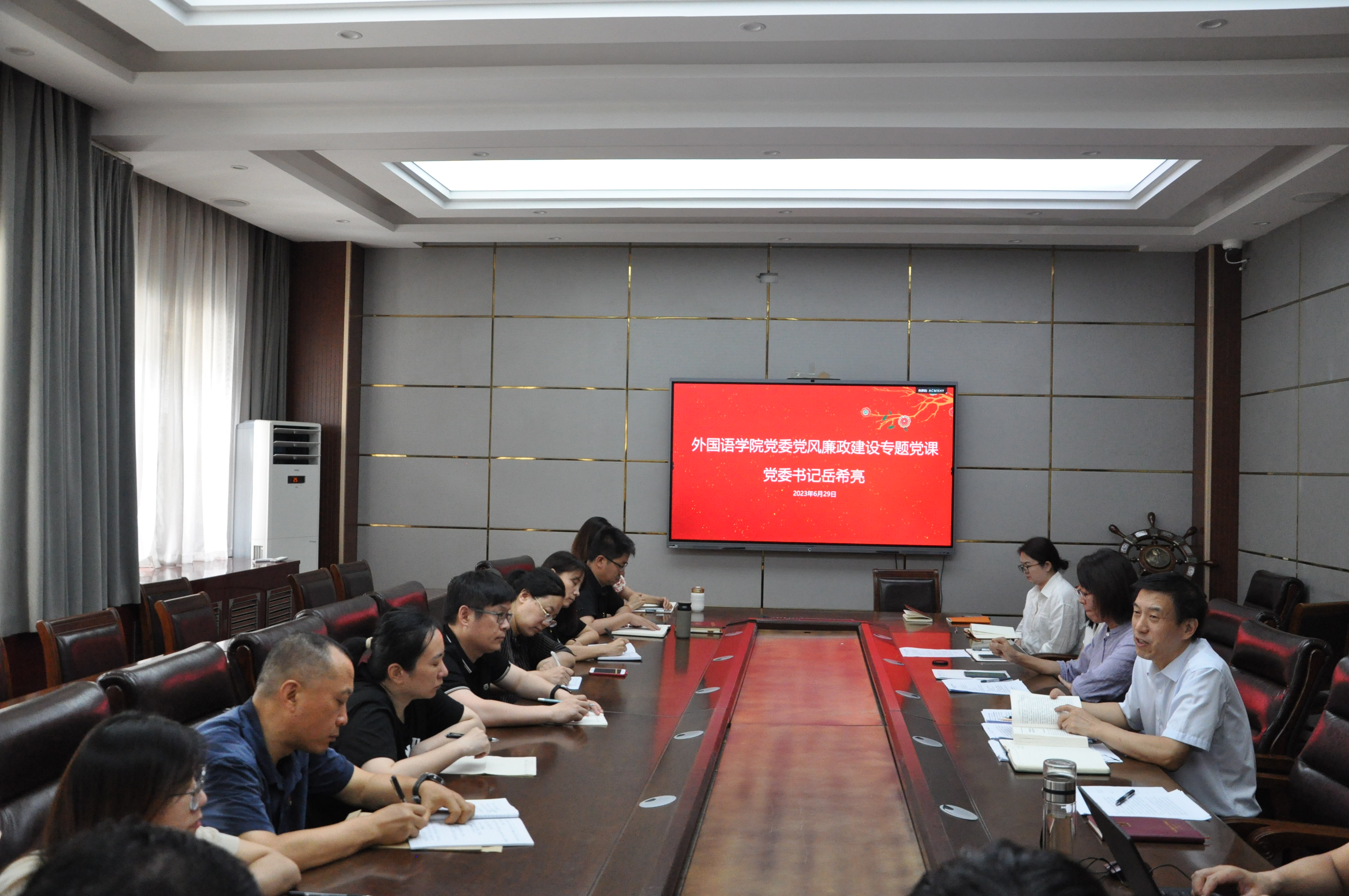 为深入开展学习贯彻习近平新时代中国特色社会主义思想主题教育,进一步做好学院的党风廉政建设工作,筑牢拒腐防变的思想道德防线,629日上午,学院党委书记岳希亮在文渊楼外国语学院会议室,为学院党委委员、教工党支部书记和支部委员、科级以上干部、全体辅导员、党员教师代表上题为《认清党风廉政建设新形势落实全面从严治党新要求》专题廉政党课。