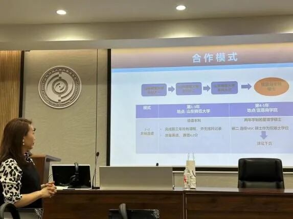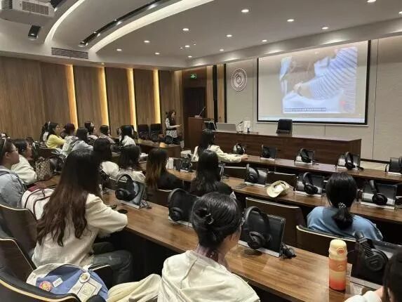 随后,冯老师对法国雷恩高等商学院进行了详细介绍。雷恩高等商学院作为法国知名高等商学院,在国际上享有较高的声誉,其在商科领域的专业设置、教学模式以及与企业的紧密合作等方面都具有独特的优势。冯老师通过展示学校的校园环境、教学设施以及学生的学习生活照片,让同学们对雷恩高商有了更直观的了解。
