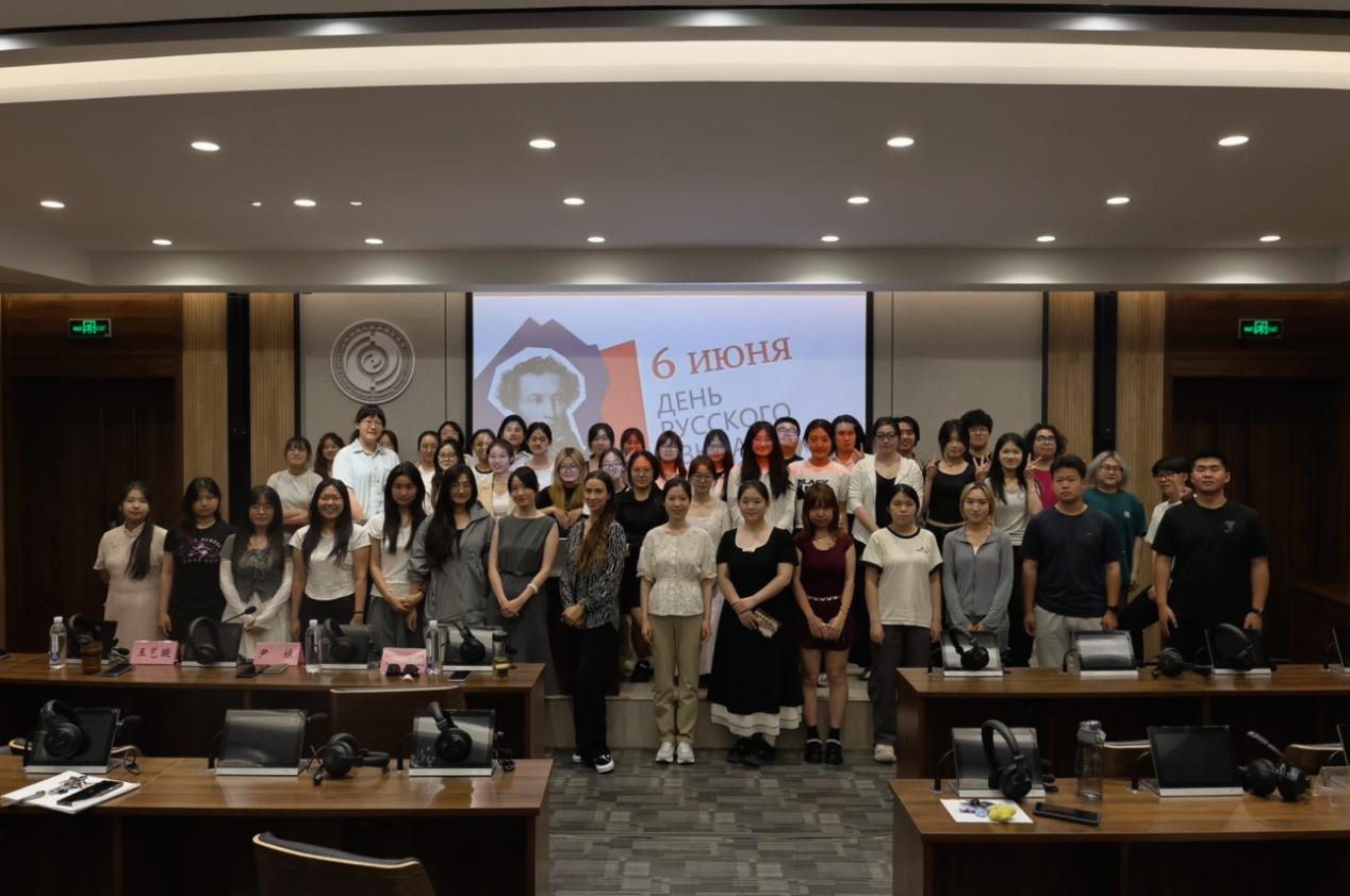 为纪念俄罗斯伟大诗人普希金的诞辰,帮助学生提升俄语学习积极性、探索俄罗斯文学的艺术魅力、增强跨文化交流能力,2025年6月6日,山东师范大学俄语开放教育中心联合俄罗斯语言与文化研究中心在长清湖校区文渊楼B座242报告厅举办俄语日·诗歌朗诵会。该诗歌朗诵会是俄语开放教育中心“俄罗斯经典文学品读”系列的第一期活动,俄语系外教А.А. Самсонова与教师代表尹禄、王艺璇以及俄语系各级学生参加此次活动。