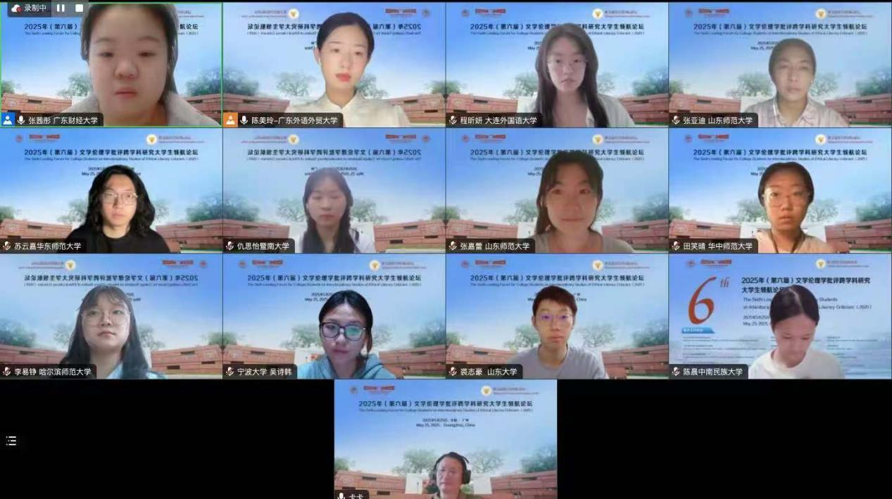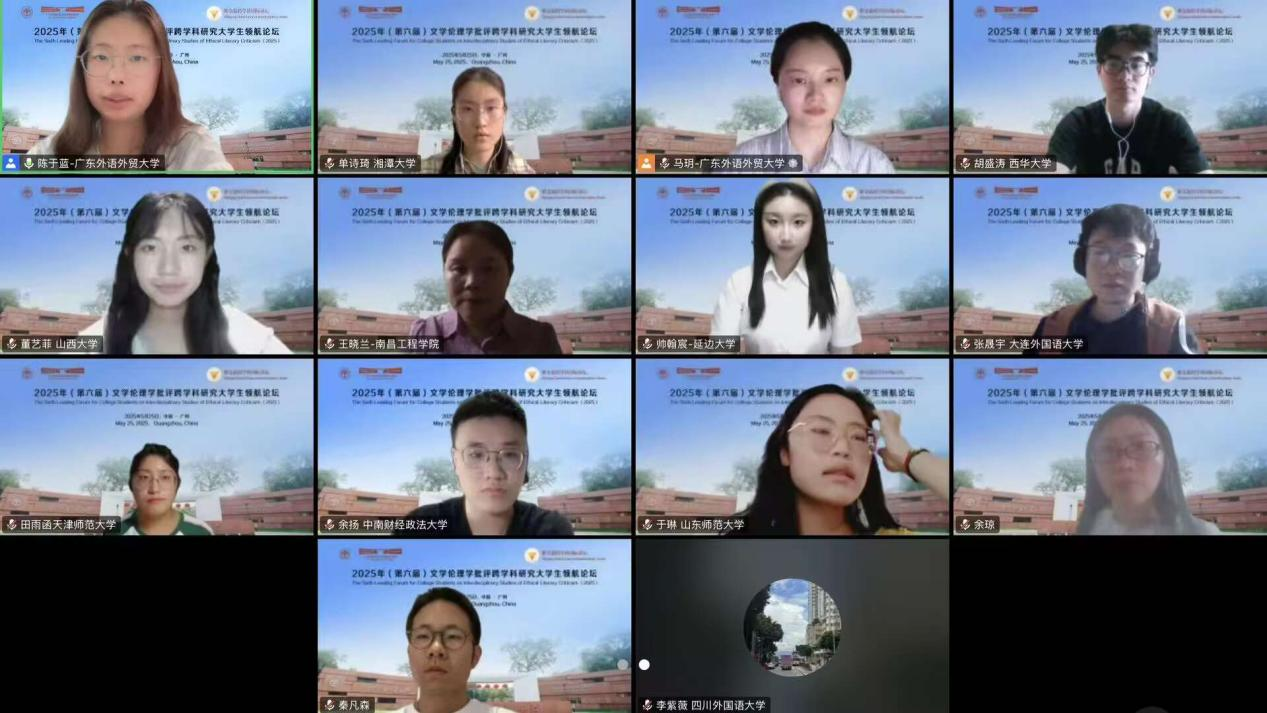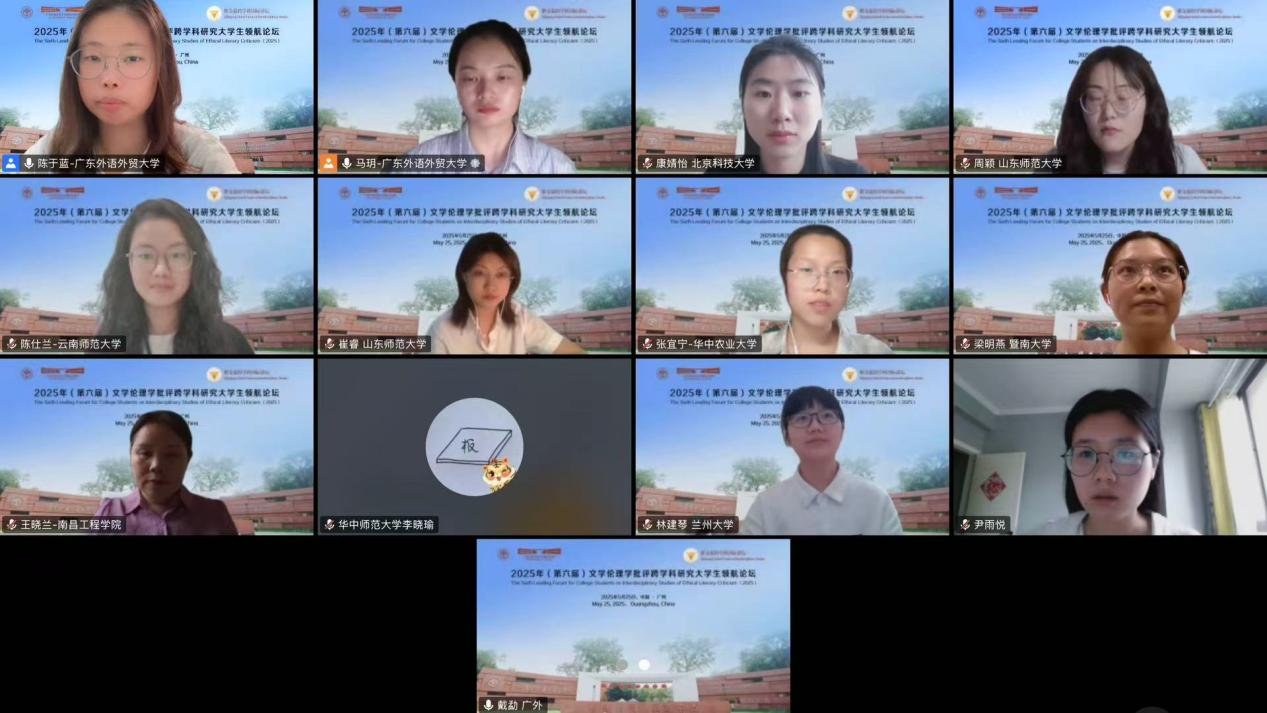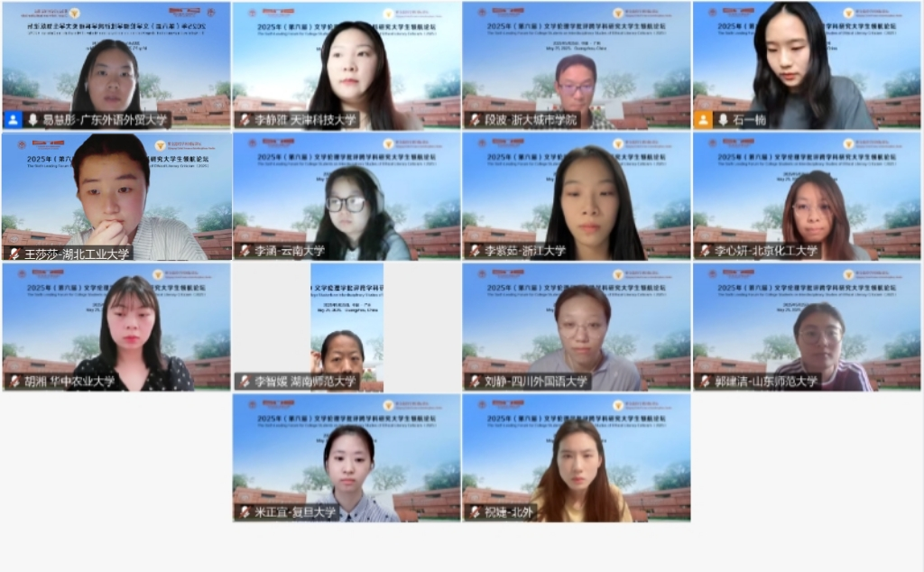 2025年5月25日,由浙江大学世界文学跨学科研究中心与广东外语外贸大学英语语言文化学院联合浙江大学外国语学院英文系、浙江大学本科生院教务处通识教育中心、英国华威大学、英国伦敦大学玛丽女王学院、英国利兹大学、英国雷丁大学、韩国建国大学、韩国高丽大学、韩国外国语大学、日本九州大学、马来西亚马来亚大学、越南顺化师范大学和菲律宾马尼拉雅典耀大学,以线上线下相结合方式,在广东外语外贸大学白云山校区成功举办“紫金港跨学科国际讲坛:第六届文学伦理学批评跨学科研究大学生领航论坛”。