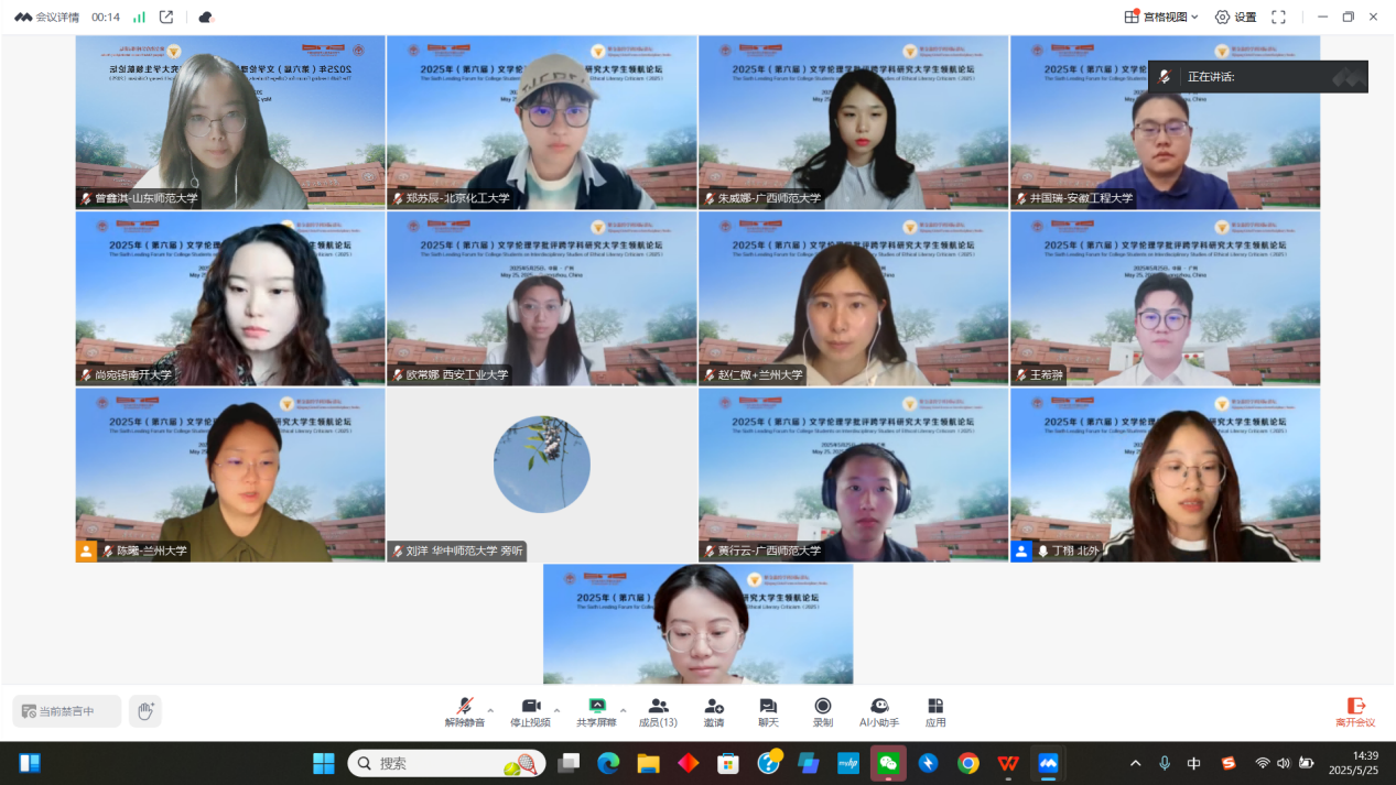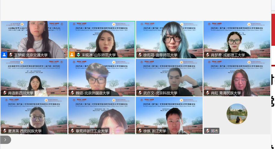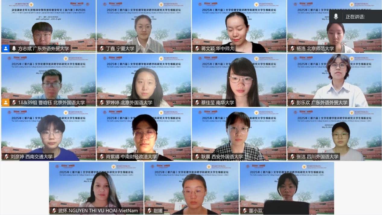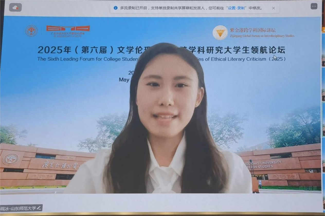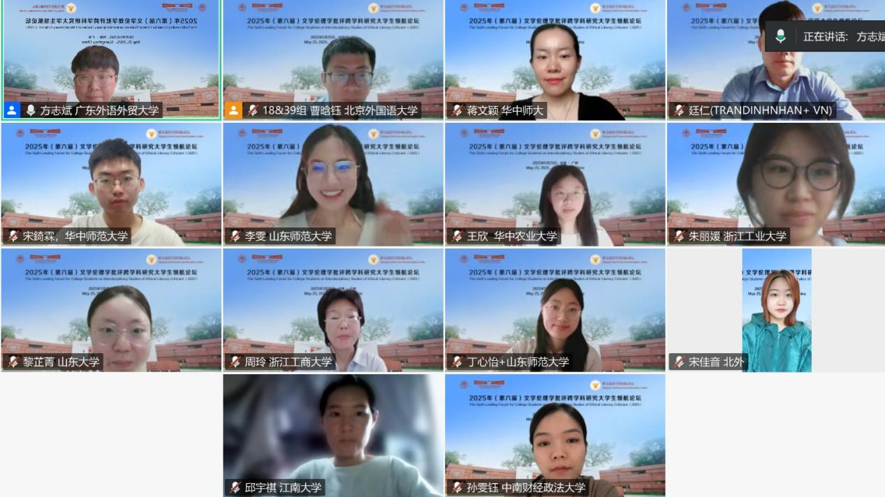2025年5月25日,由浙江大学世界文学跨学科研究中心与广东外语外贸大学英语语言文化学院联合浙江大学外国语学院英文系、浙江大学本科生院教务处通识教育中心、英国华威大学、英国伦敦大学玛丽女王学院、英国利兹大学、英国雷丁大学、韩国建国大学、韩国高丽大学、韩国外国语大学、日本九州大学、马来西亚马来亚大学、越南顺化师范大学和菲律宾马尼拉雅典耀大学,以线上线下相结合方式,在广东外语外贸大学白云山校区成功举办“紫金港跨学科国际讲坛:第六届文学伦理学批评跨学科研究大学生领航论坛”。