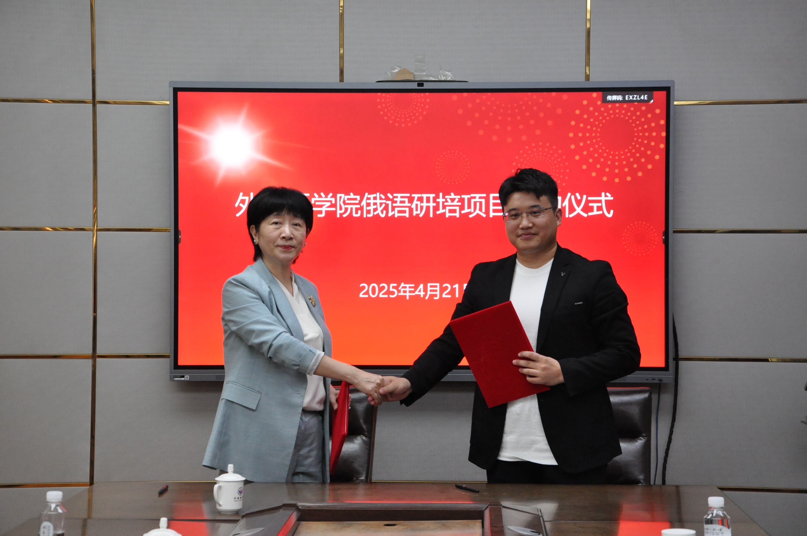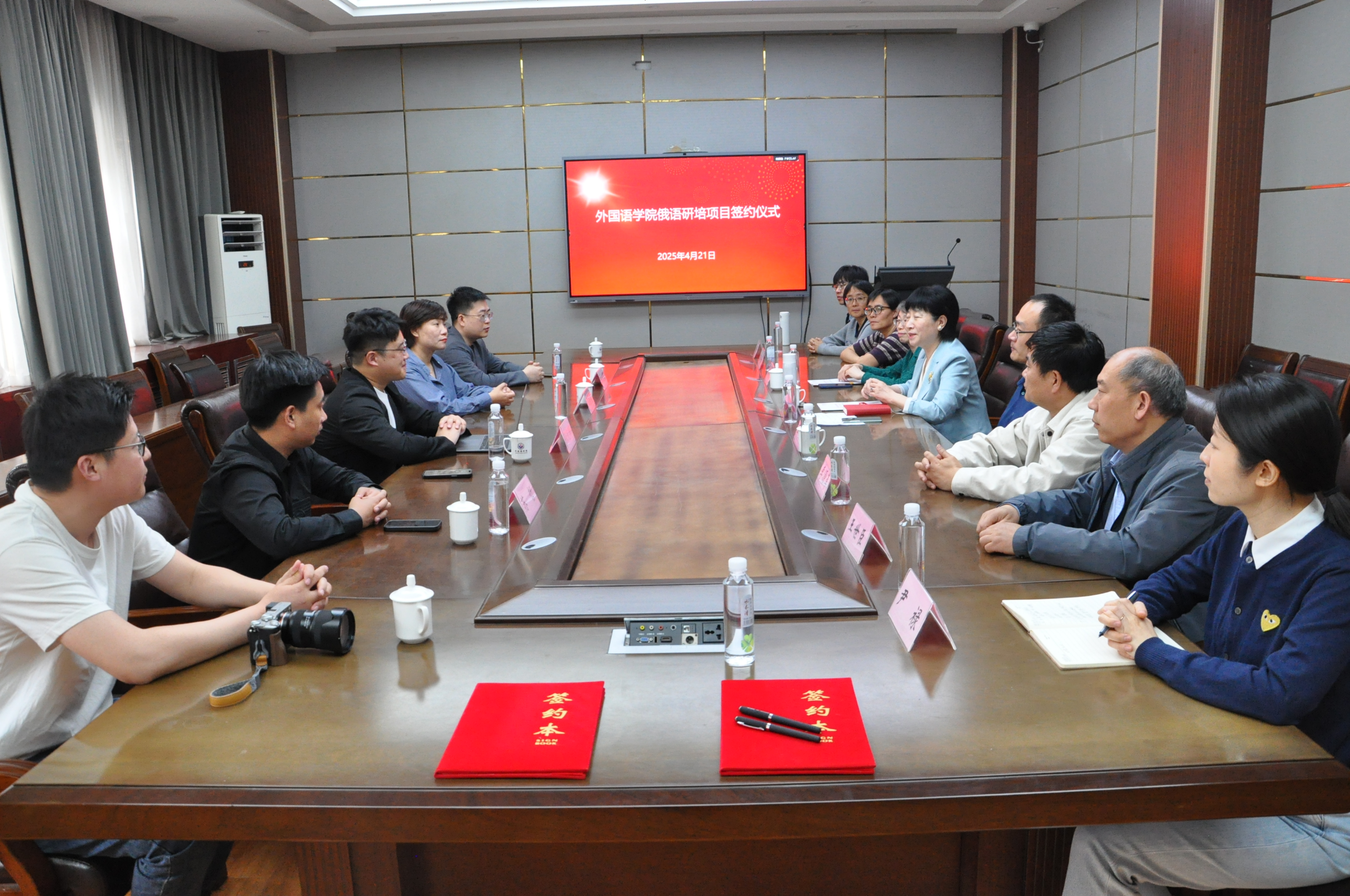 2025年4月21日,我院与山东学情在线有限公司“俄语研培项目”签约仪式在长清湖校区文渊楼A313会议室举行。双方将携手推进俄语研培工作,实现资源共享、优势互补。学院党委书记王松、院长王卓、党政办主任李源革,俄语系主任孙嵩霞、副主任王世臣及部分俄语专业教师,山东学情在线有限公司(万博国际教育创始人)张光辉,万博国际教育校长苏哲,万博国际教育潍坊分校校长王美美等出席此次签约仪式。