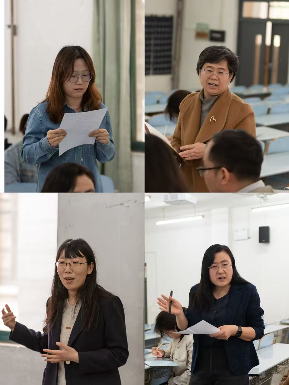 随后在由副院长张媛主持的教学研讨环节上,万方老师以教学对象特征为切入点,系统阐释了课程设计理念,通过教学理念、目标、方法及内容的全维度解析,结合课程案例详细展示了教学准备、动态调整及创新思考的全过程。在经验分享环节中,青年教师徐倩倩表示,万方老师的课堂以严谨的学理逻辑与学科特色相融合的教学设计令人耳目一新,通过有机融入社交媒体元素激发学生思辨能力,依托中国故事强化跨文化交流,配合高水准的课件视觉呈现,为教学创新提供了优质范本;院级督导蒋斌高度评价了课程架构的完整性与科学性,指出其遵循认知规律,将知识传授、技能培养、课程思政与批判性思维训练形成教学闭环,贯通古今中外的内容编排具有示范价值;校级督导胡艳玲提炼出课程三大创新亮点:依托多模态手段和深度问题链构建的立体化教学设计,自然渗透的沉浸式思政教育,以及注重跨学科场景应用的实践导向,充分落实英语教学活动观;学校教师发展中心潘婷充分肯定了学院在课程建设中的引领作用,强调本次研讨会通过搭建优质学术交流平台,有效促进了教学经验的深度共享,并期待学院持续发挥示范辐射效应,推动教育教学质量全面提升。