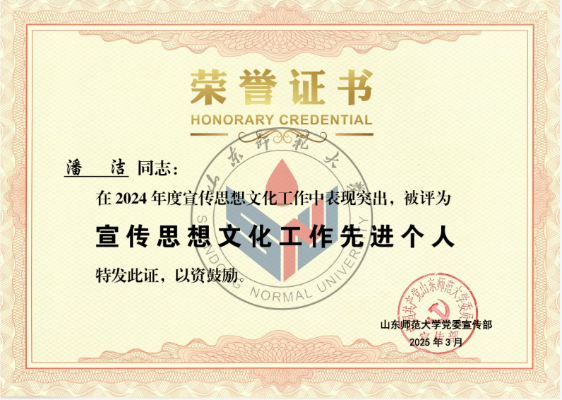 4月3日上午,山东师范大学2025年宣传思想文化工作会议在千佛山校区教学三楼报告厅举行,会议表彰了2024年度宣传思想文化工作先进单位和个人。