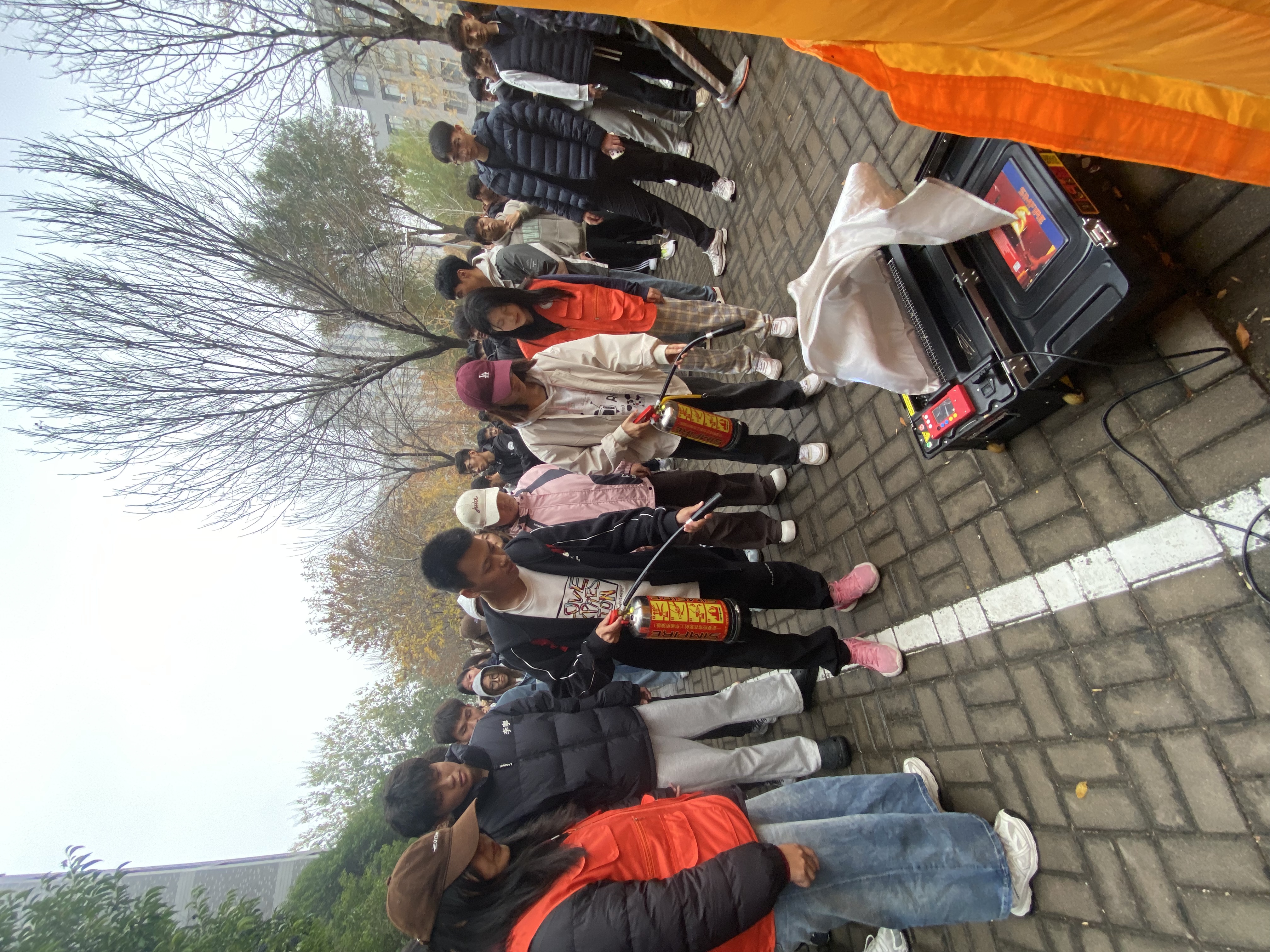 活动伊始,消防志愿者对到场师生进行了全面的消防安全知识宣讲,通过讲解火灾的危害、预防措施以及火场逃生技巧,使每位参加演练人员都充分认识到消防安全的重要性,并特别强调了在火灾发生时要保持冷静、迅速行动的原则。专家的讲解为后续的实战演练打下了坚实的基础。随后,老师与同学们练习使用电子灭火器,在志愿者的悉心指导下,扎实掌握了灭火器的使用技巧。最后,全体师生有序进入模拟烟雾逃生体验馆进行逃生演练。馆内烟雾弥漫,同学们捂住口鼻,弯腰低头,沿着规定的逃生路线迅速有序撤离,演练现场秩序井然。