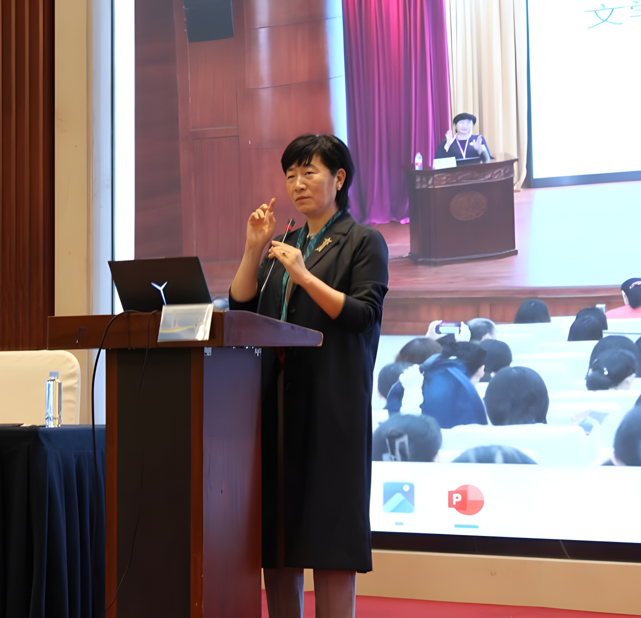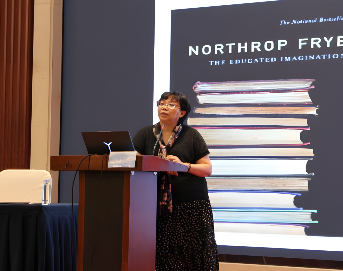 27日上午,大会第四场主旨发言由清华大学曹莉教授主持。宁波大学王松林教授在发言中强调,文学教育的核心在于将经典文学作品的审美观念与价值理念内化为学生的内在素养,以达到陶冶情操、培育品格的目的,这构成了通往“全人教育”的重要途径。