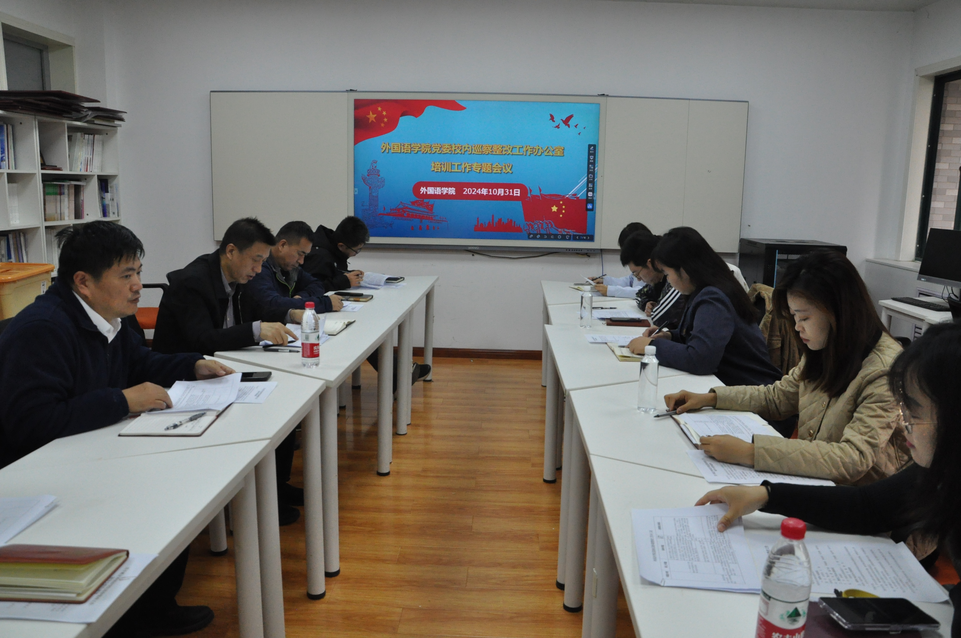 为扎实推进学校党委关于巡察整改工作的部署和反馈问题整改落实工作,切实做好巡察“后半篇文章”。10月31日,外国语学院党委巡察整改办公室召开外国语学院巡察整改工作培训会。会议由党委委员、学院巡察整改工作办公室主任李源革主持,学院党委书记岳希亮、副书记陶业涛,组织员、人事人才秘书、部分党支部书记、辅导员参与此次会议。