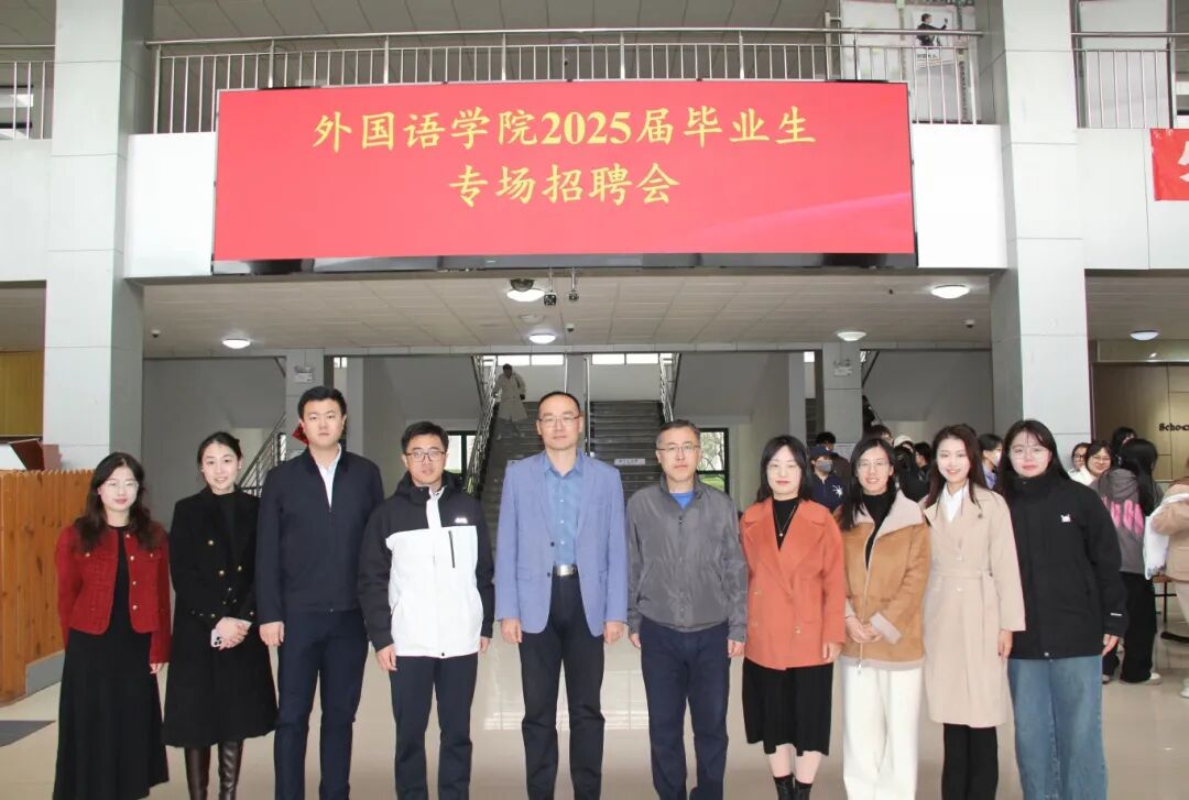 3月27日上午,外国语学院2025届毕业生专场招聘会在长清湖校区文渊楼B区顺利举办。外国语学院党委书记王松、党委副书记司世牧、全体辅导员到招聘会现场组织开展工作。