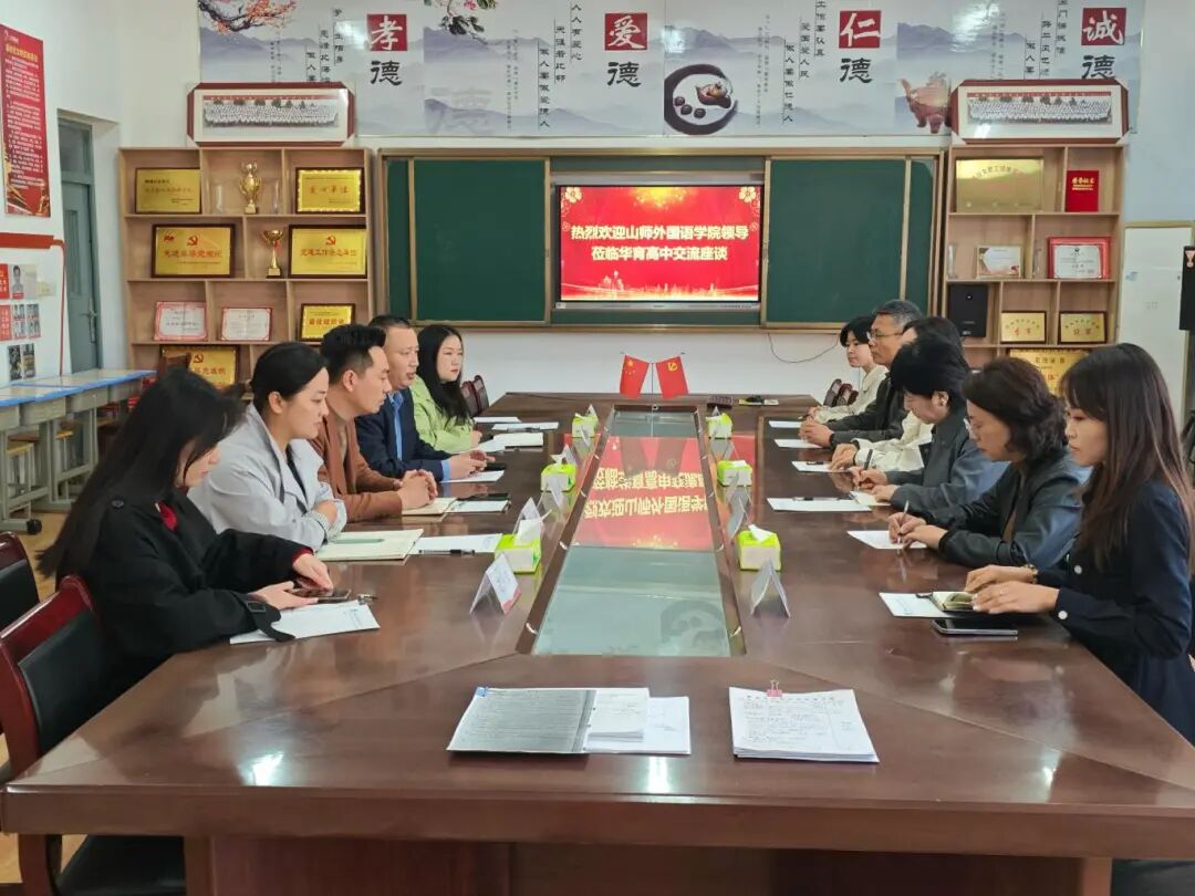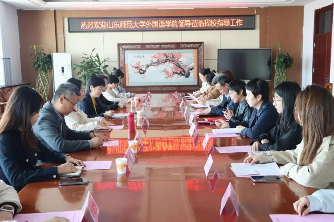 我院领导老师亲切慰问实习生并感谢实习学校的悉心培养,主要领导就学院人才培养、招生就业、教育实习工作安排等情况进行介绍,我院领导表示,山东师范大学外国语学院承担着我省基础外语教育高质量发展的任务与使命,必将全力以赴,为基础外语教育的全面、快速、健康发展贡献力量。教育实习作为师范生人才培养的重要环节,学院高度重视,持续跟进,保障师范生教育实习顺利进行。我院实习指导教师就实习生的工作做出点评与指导。实习单位的领导与老师表达了对我院实习生素质的高度认可,双方就未来深度合作项目、开拓就业岗位等问题进行研讨交流。座谈会结束后,双方一同参观校园及生活环境,实地查看实习生办公、食宿情况。实习学生表示,学院的关怀让他们倍感温暖,大家将以更严谨的态度完成实习,锤炼教学本领,立志成为优秀教师,为教育事业贡献力量。