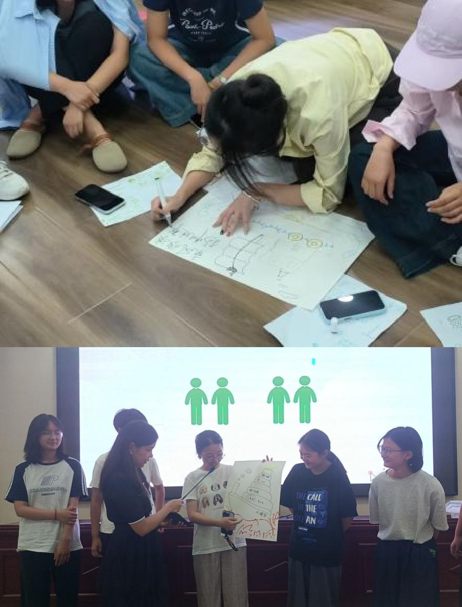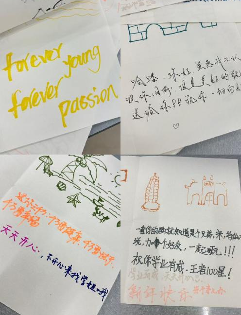 在“找朋友”环节中,交流持续升温。从两人配对到四人、八人成组,同学们在主动寻找与真诚交流中不断扩大朋友圈,现场气氛热烈而温暖。作为活动核心的“未来之舟”环节则充分激发了团队的创造力与凝聚力。同学们共同执笔,绘制一幅象征大学新起点的帆船,并将个人的期待、忧虑、挑战与信心融入其中,分享环节各组依次上台阐述船名、设计与深刻寓意,引发了强烈的情感共鸣。“心语流转”环节温馨感人,同学们在小组内互赠手写祝福,真挚的话语在笔尖传递,同窗情谊在温暖中流淌。