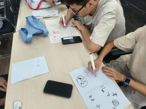“生日圈”热身游戏让同学们在无声的默契中按生日顺序排列,轻松愉快的氛围瞬间拉近了彼此的距离。随后的“四宫格”自我介绍环节,同学们执笔作画,用色彩和线条描绘姓名、家乡、爱好与特长,创意十足地展示了个人风采,加深了相互了解。