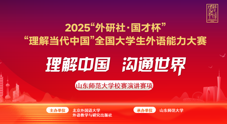 “外研社·国才杯”“理解当代中国”全国大学生外语能力大赛作为教育部认可的全国性权威赛事,始终秉承“以世界语言讲述中国故事,以青年声音传播当代中国”的宗旨。本届赛事通过搭建跨文化交流平台,不仅提升了选手的英语表达与思辨能力,更培养了青年学子用国际化的话语体系诠释中国智慧与中国方案的责任感与使命感。参赛选手在跨文化语境下的精彩演绎,充分彰显了山东师范大学学子在语言学习、文化理解与国际传播方面的深厚底蕴,体现了外语教育和国际传播人才培养的丰硕成果。赛事的成功举办,为学校不断打造具有全球胜任力的青年群体注入了新的动能,也为推动学校在新时代外语教育与国际交流领域走向更高水平提供了有力支撑。