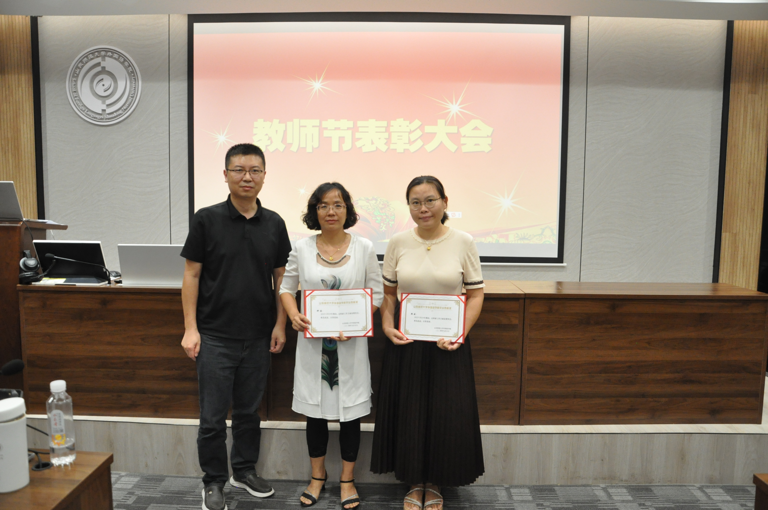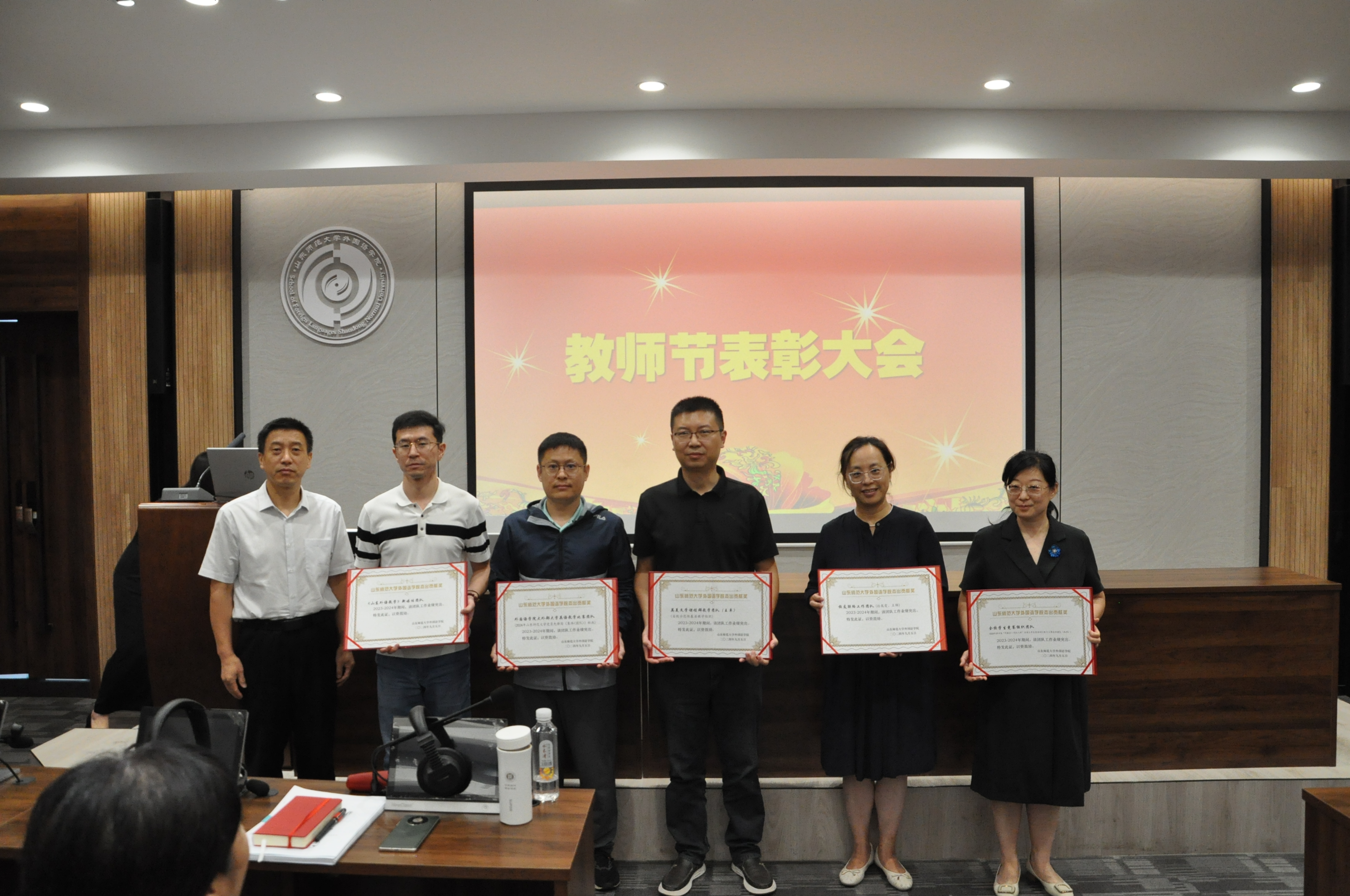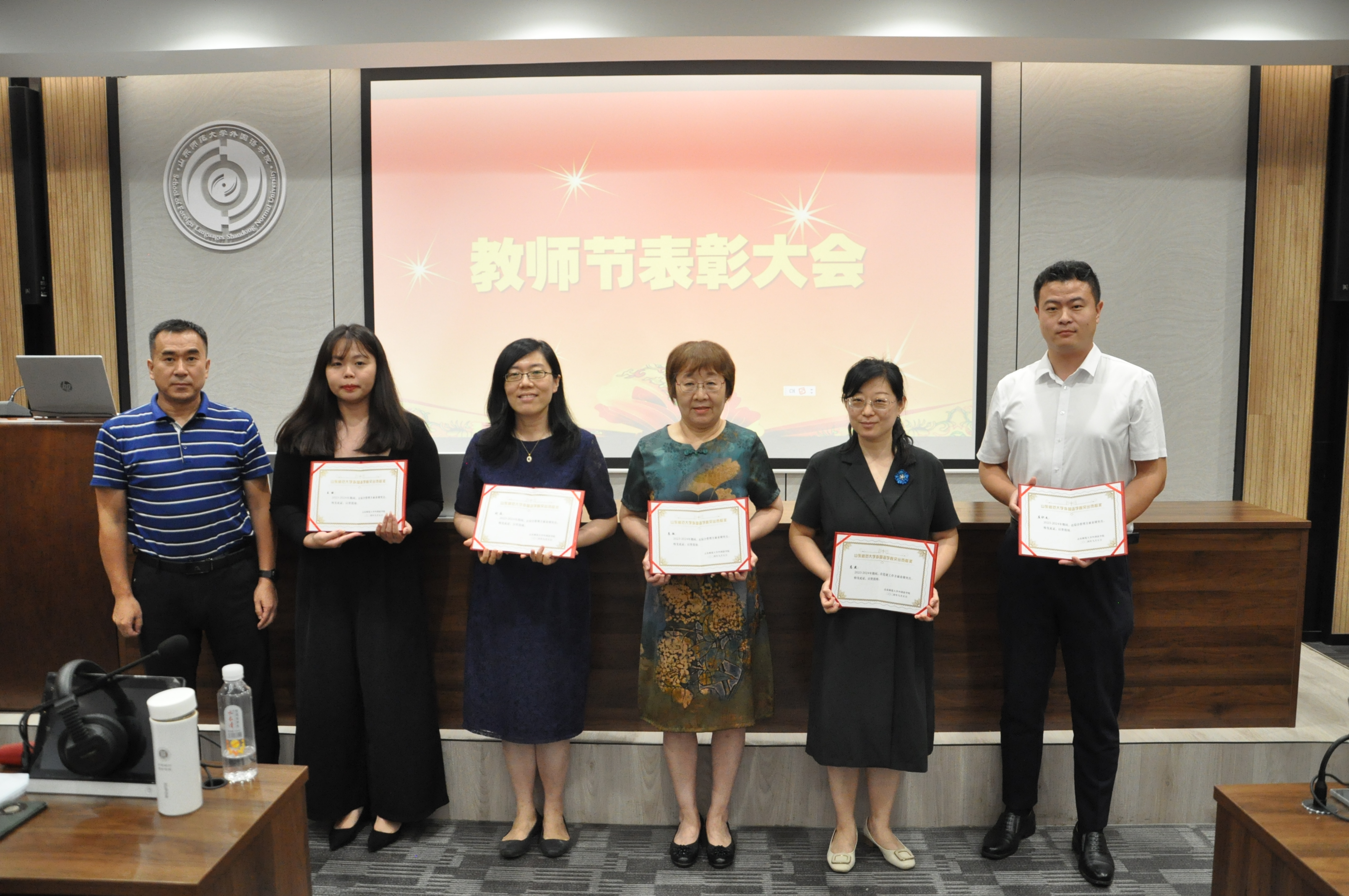 表彰仪式上,新入职的5位教师依次亮相并做自我介绍。陶业涛副书记宣读了《山东师范大学外国语学院关于表彰杰出贡献奖、突出贡献奖的决定》。岳希亮书记为获得杰出贡献奖的省级示范性基层教学组织英美文学课程群教学团队、本科教育教学审核评估团队、校党员先锋岗(集体<团队>)标兵外国语学院大外部大学英语教学比赛团队、校友联络工作团队、《山东外语教学》新媒体团队、全校学生竞赛组织团队颁发荣誉证书;王卓院长为在教学方面做出突出贡献的颁发荣誉证书;翟乃海副院长为在科研工作方面做出突出贡献的个人颁发荣誉证书;陶业涛副书记为在综合管理方面做出突出贡献的个人颁发荣誉证书。