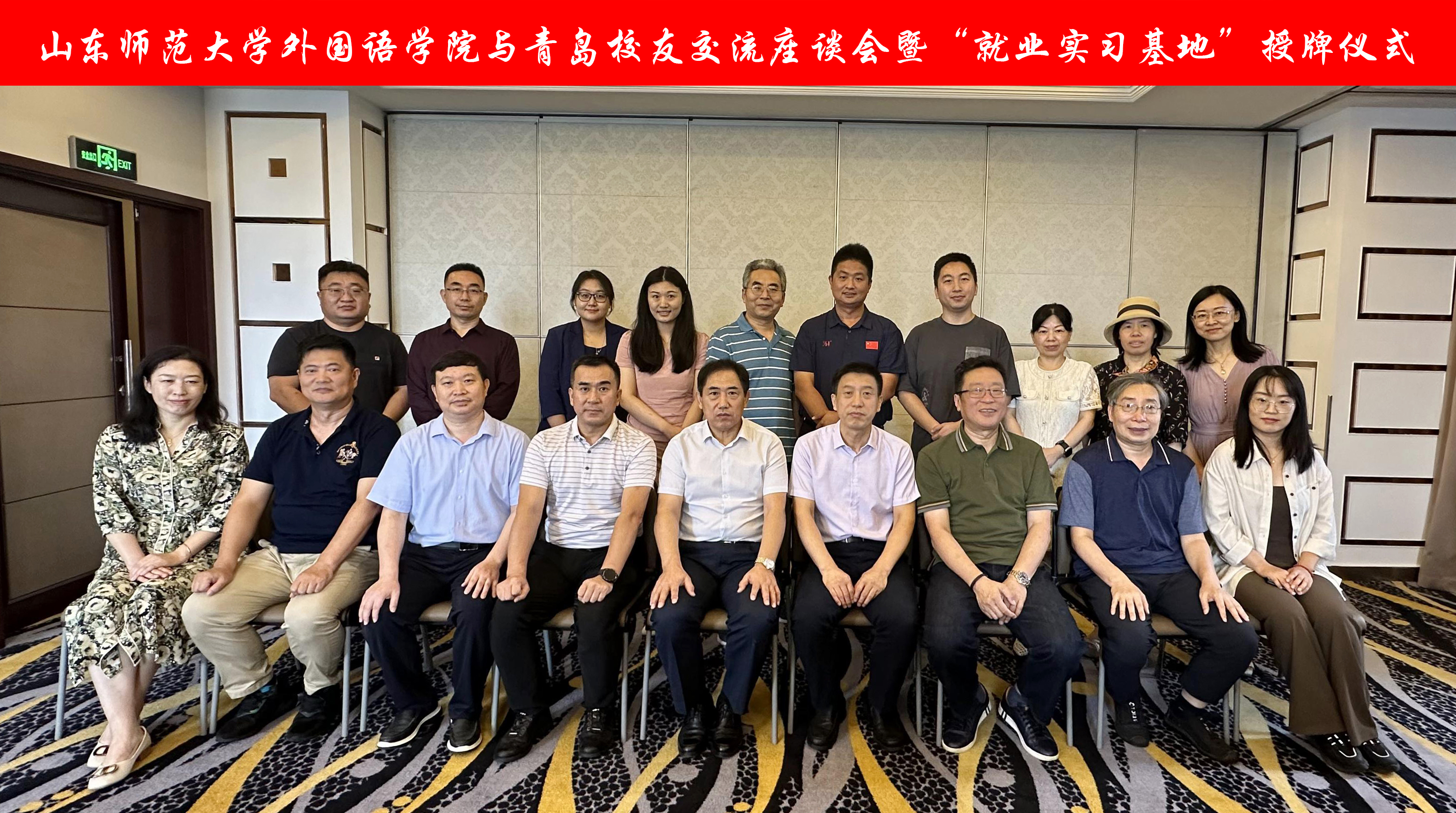 8月21日上午,为进一步加强校企合作,拓展毕业生的就业渠道,并促进校友之间的交流与合作,由山东师范大学外国语学院与山东师范大学青岛校友会联合举办的“访企拓岗”青岛校友交流座谈会暨“就业实习基地”授牌仪式,在青岛市市南区丽天大酒店第25层会议室隆重就行。山师青岛校友会会长、数学80级校友王学贵,副会长、俄语90级校友王明光,副秘书长、05级教育硕士校友田敏等20余名来自青岛教育与企业界的代表齐聚一堂,山东师范大学外国语学院党委书记岳希亮、党委副书记陶业涛、党政办主任李源革以及就业辅导员付晓朦参加了参加座谈会。日语87级校友张世杰主持会议。