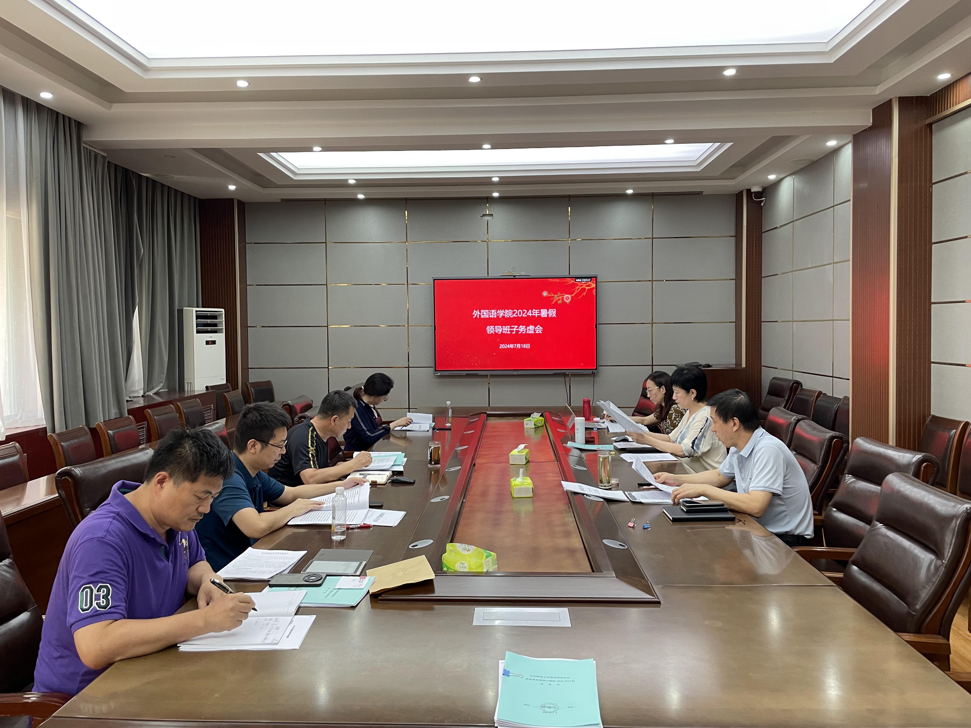 7月18日下午,学院在长清湖校区文渊楼A313会议室召开了2024年暑期外国语学院创新与高质量发展务虚会。外国语学院党委书记岳希亮、院长王卓、副书记陶业涛,副院长张媛、翟乃海、院长助理郑琳琳、党政办公室主任李源革参会,会议由院长王卓主持。