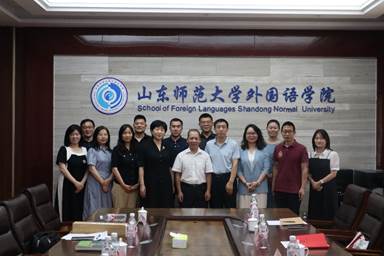 江飞书记介绍了广西师范大学外国语学院“党建工作、师资队伍、学生规模、课程设置,人才培养”等情况,随后两校就学生就业率、课程学分设置、混合式教学的监控和质量保障、师资队伍建设和学生工作等方面进行了深入交流,并分享了各自的经验和做法。江飞表示,山东师范大学在大学英语教学改革和师资队伍建设方面取得的成绩令人印象深刻,广西师范大学将认真学习借鉴,并积极探索适合自身发展的路径。