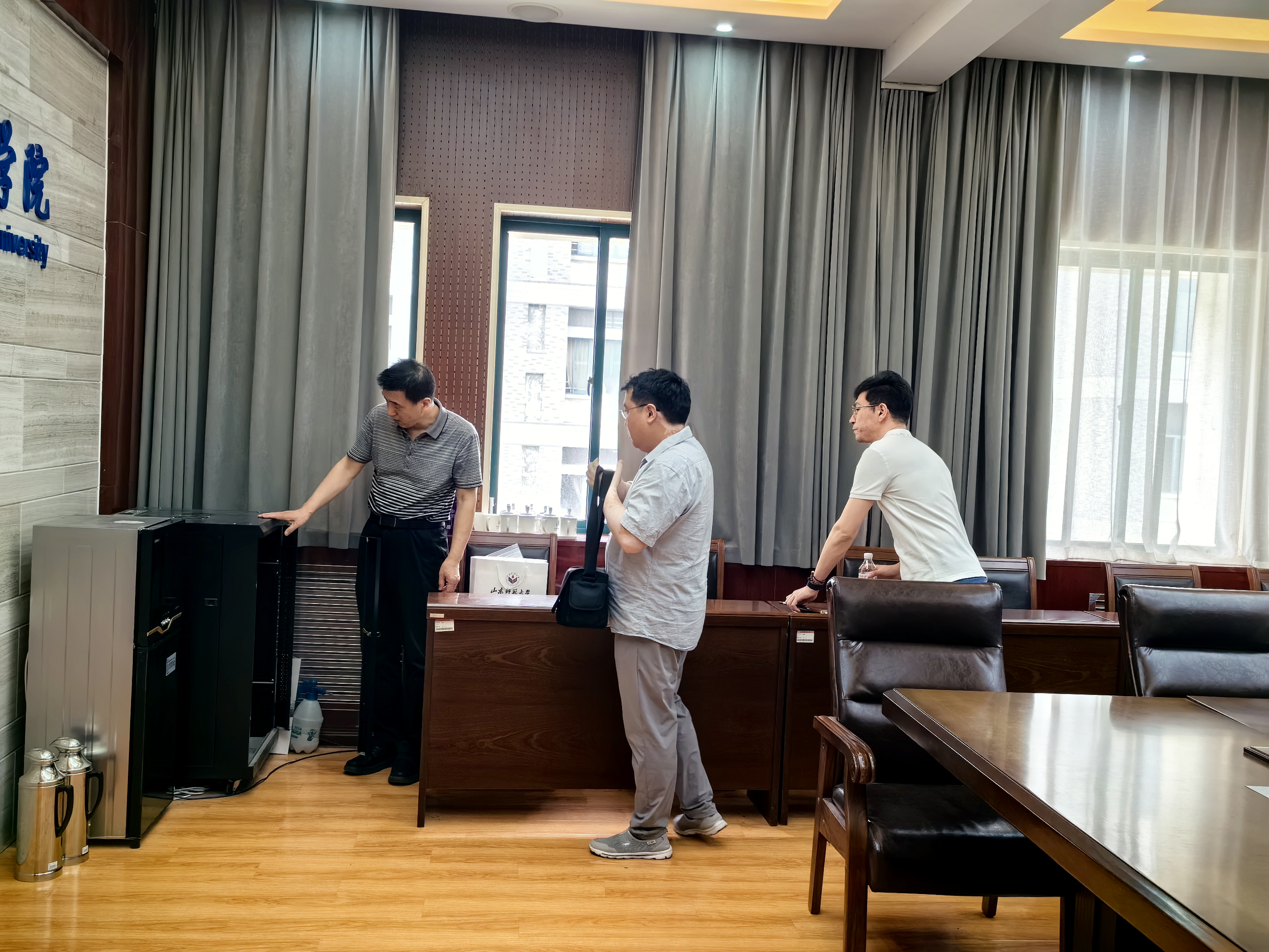 会后,岳希亮书记带领学院党政办公室、各科室负责人开展了端午假期前全院办公区域和教学区域的安全检查工作。