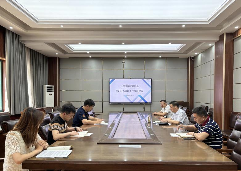5月21日上午,外国语学院在文渊楼A区313会议室召开意识形态工作专题党委会议。学院党委书记岳希亮主持会议。学院党委副书记陶业涛、党委委员及相关工作人员参加会议。
