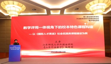 2024年3月,在北京召开的第八届全国高等学校外语教育改革与发展高端论坛上,我院王卓院长应邀展示了学院在产教融合探索的过程中,围绕“国际人才英语”课程开展产教融合校本发展实践,建设全方位、多层次的特色课程体系,引入企业导师,设计实践活动,加强学生实训的经验。该课程已被评为山东省省级课程思政示范课程和省一流本科课程,获得了与会高校和企业的广泛关注。