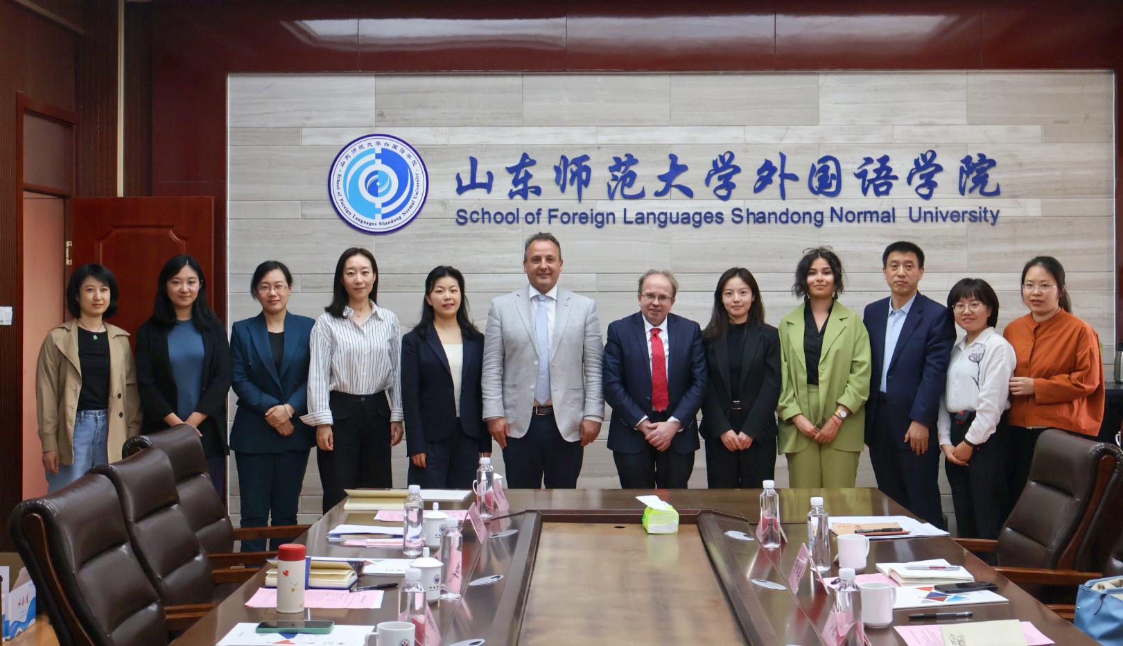 2024年4月12日下午,法国驻华大使馆教育合作负责人Xavier Loustaunau、法语师资培训负责人Didier Hetet、教育合作官员Célia Hoarau和胡心美女士四位代表访问山东师范大学外国语学院,就开展法语专业教师交流及联合师资培训等进行交流与探讨。学院党委书记岳希亮、国际交流与合作处副处长张鸥、副院长张媛,国际交流与合作处专家科副科长范峻伟以及西方语系的四名法语教师热情接待了法方代表团并在学院313会议室进行座谈。