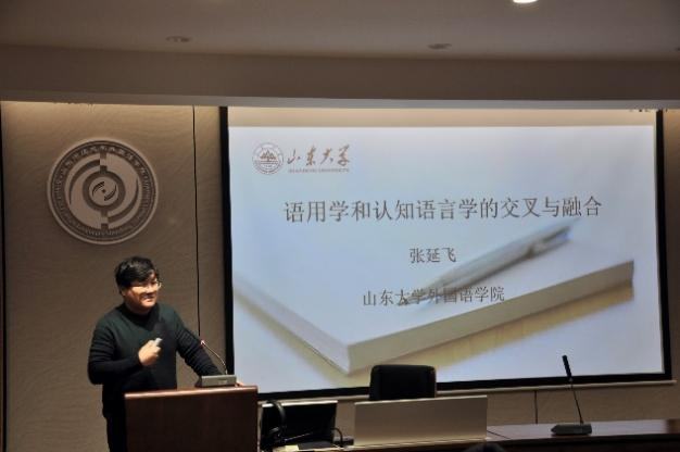 张延飞教授做了题为“语用学与认知语言学的交叉与融合”的报告。在指出认知语用学理论局限性的基础上,张老师提出了一个“历时”“认知”和“语用”融合的历时认知语用学模式,旨在研究词义-语用意义-新词义的历时演化过程,揭示词义的演变规律,同时为“一词多义”研究提供新视角。