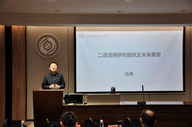 任伟教授的讲座题目是“二语语用研究现状及展望”。任老师指出,二语语用已逐步发展成为一个成熟的研究领域,在回顾二语语用研究历史和现状之后,他剖析了该领域常用的研究方法,并结合其团队近几年的实证研究分析了所要进一步探讨的问题和未来发展趋势。