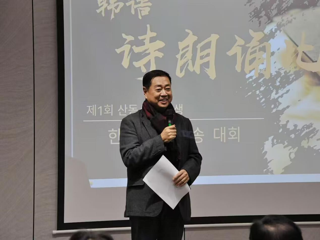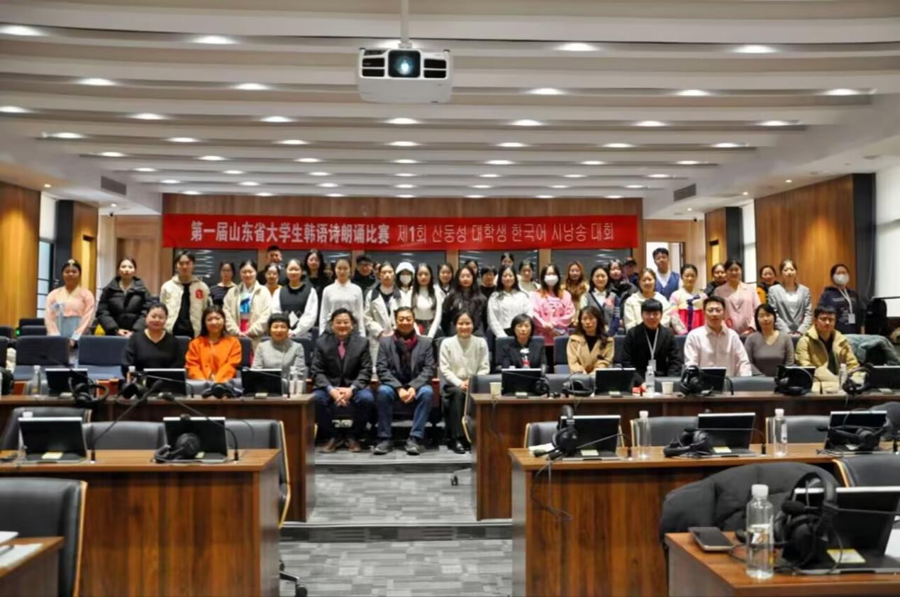 2023年12月10日,第一届山东省大学生韩语诗朗诵比赛决赛在山东师范大学长清湖校区文渊楼B区242厅举行。本次大赛由山东师范大学外国语学院主办,韩国文学翻译院、韩国大山文化财团协办,得到了全省各地学校的大力支持,有来自全省20余所高校184名学生报名参加了初赛,共选拔出51名进入了复赛,评审专家根据评审规则对51名选手进行了公正、客观、严谨的评选,最终选出25名选手成功晋级总决赛。