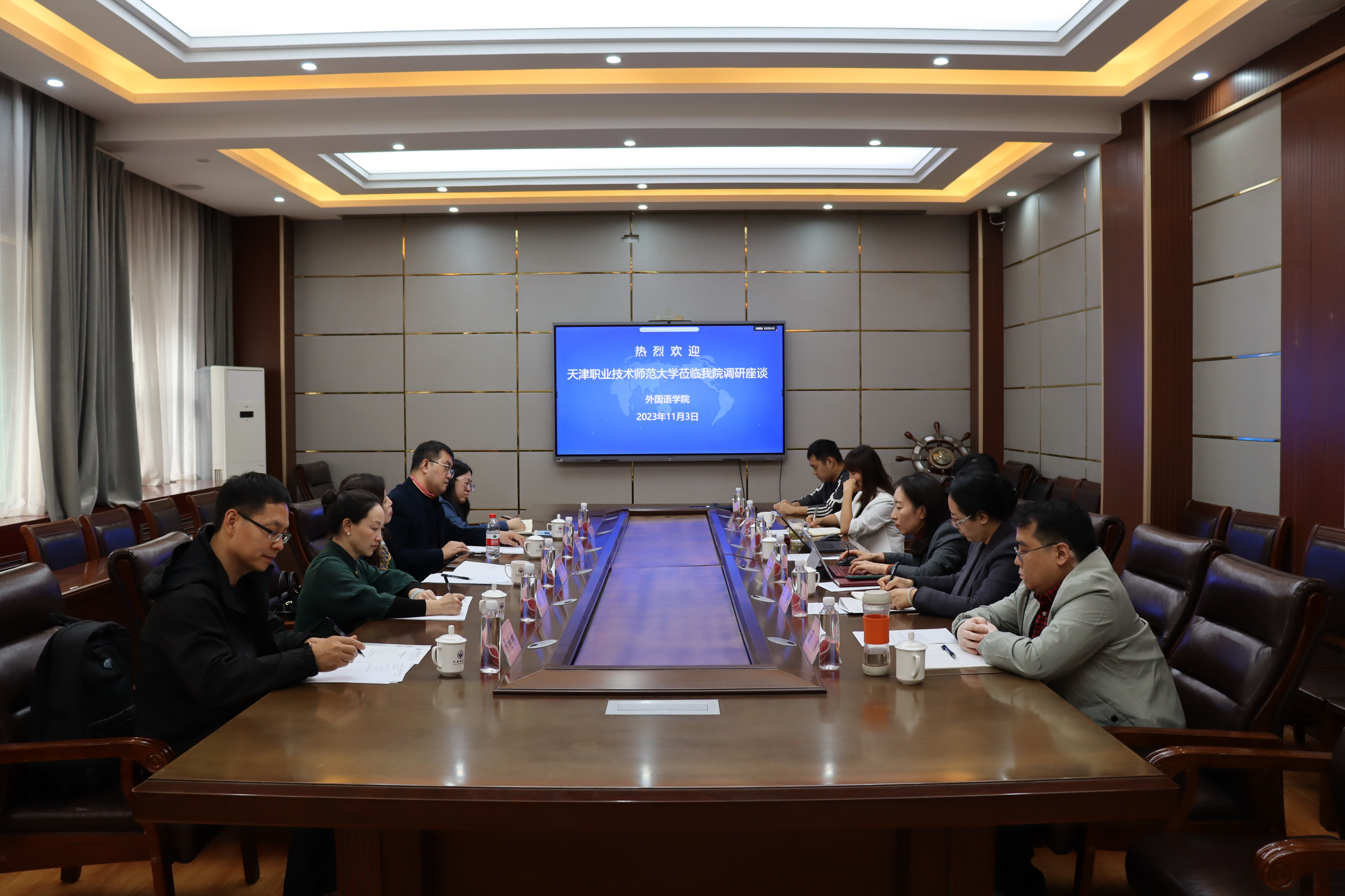 2023年11月3日上午,天津职业技术师范大学外国语学院教学院长申丽一行来我院进行学习调研,调研会在长清湖校区文渊楼A区313会议室举行。参与调研会的有:天津职业技术师范大学教学院长申丽、大外一部主任王春楠、大外二部主任蔡莺、国际汉语教育系主任孙丽丽、语言实验中心主任常继林,山东师范大学外国语学院院长王卓、副院长张媛、大外部主任韩冰、大外部副主任李静、大外部教研室主任汤蒙、实验室管理办公室负责人张磊。王卓院长主持会议。