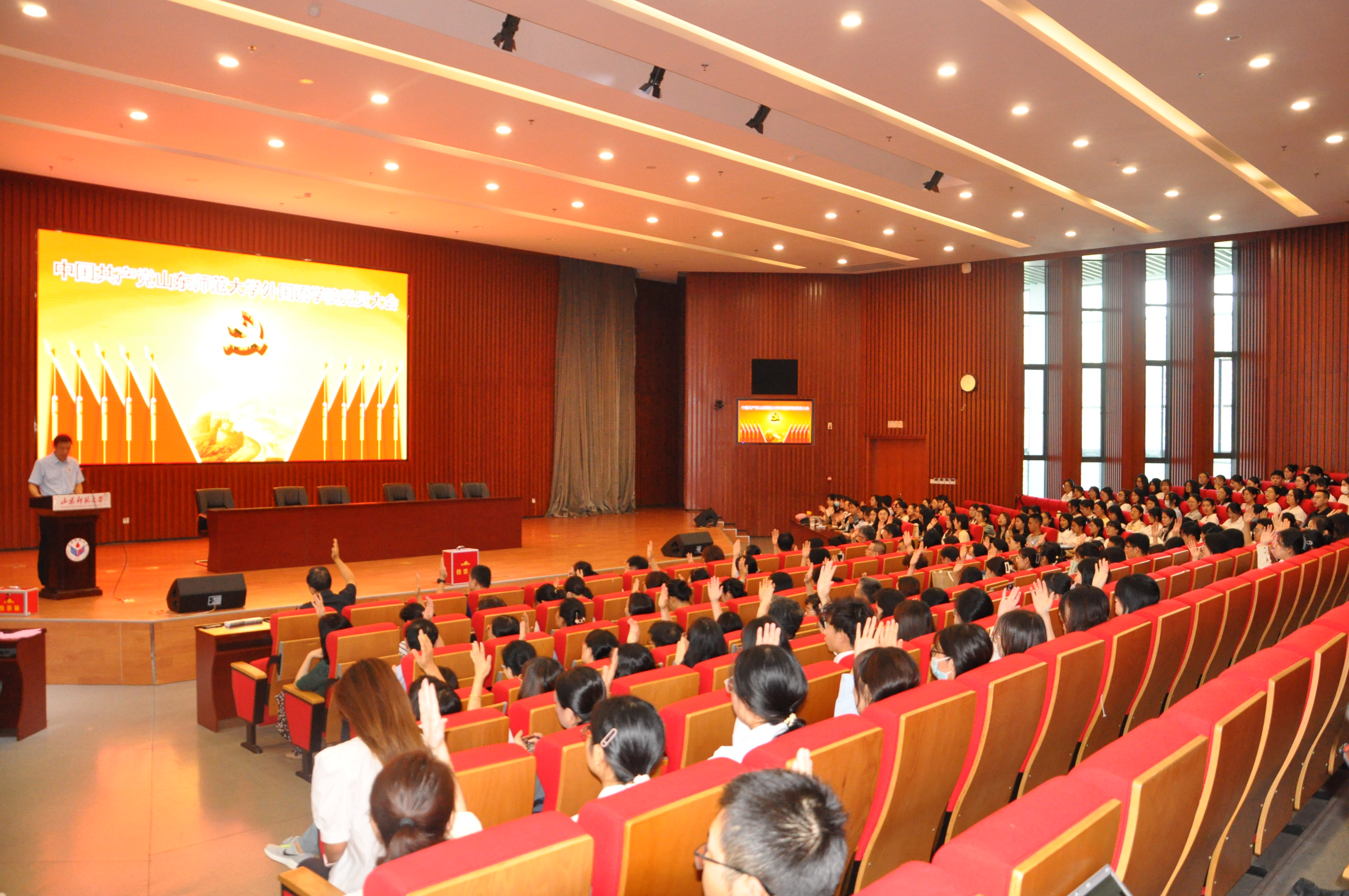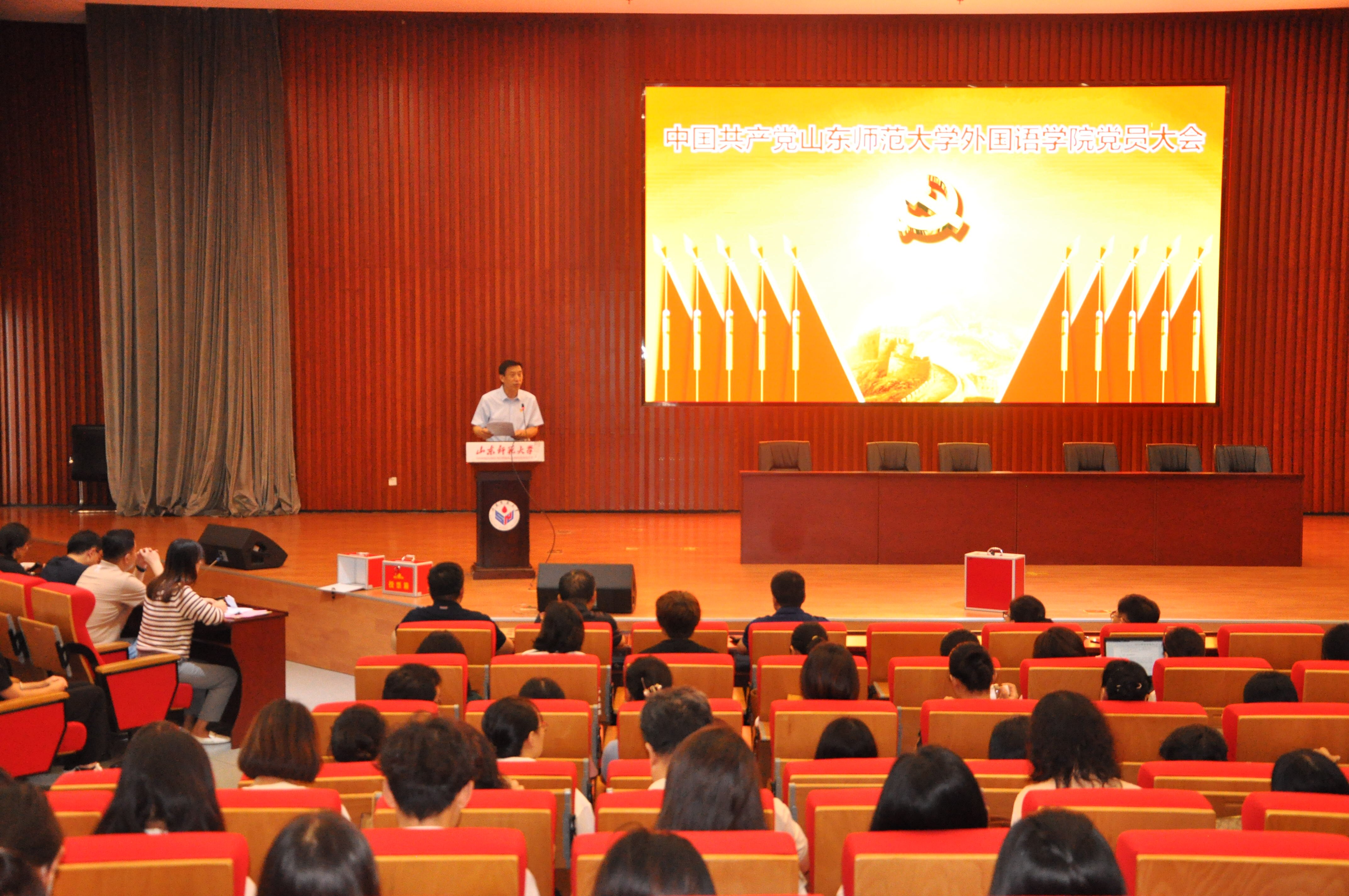 2023年9月18日中午,中国共产党山东师范大学外国语学院党员大会在长清湖校区文昌楼一层西105报告厅召开。选举产生参加学校第九次党员代表大会代表。学院全体党员参加大会,大会由学院党委书记岳希亮主持。