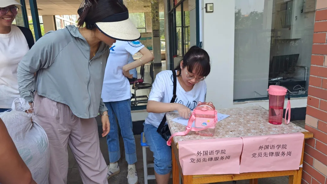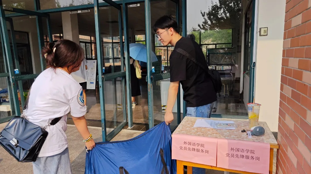 由外国语学院研究生组成的党员先锋服务岗恪尽职守、奋勇争先,为广大新生答疑解惑、提供帮助。他们兢兢业业、奔波忙碌的身影活跃在迎新工作的各时各处,发挥党员的模范带头作用,传播为人民服务的灿烂信念星火。