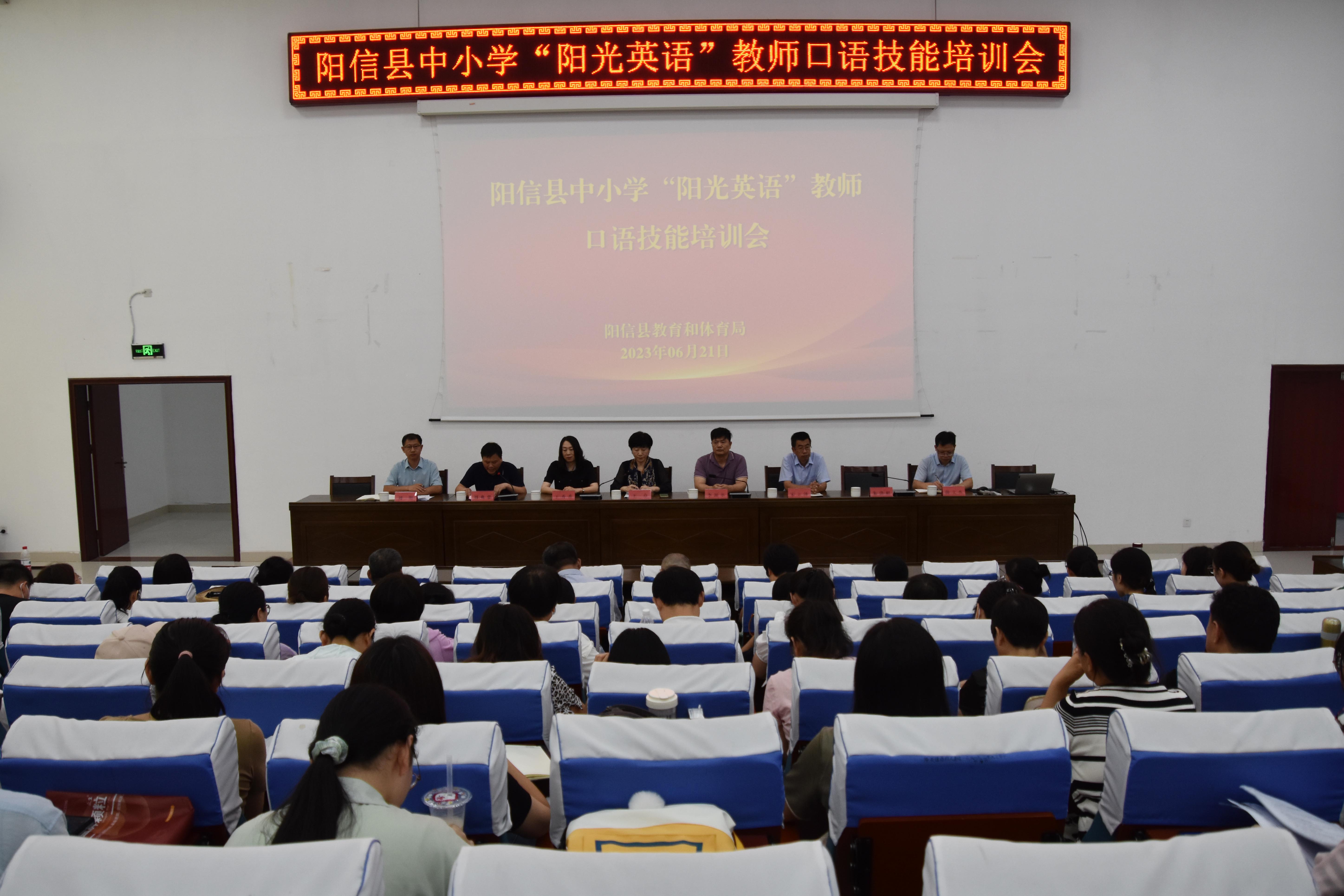 会上,阳信县委教育工委常务副书记、县教体局党组书记、局长刘兆忠致欢迎词。他指出教师的专业素养决定着学生的发展高度,制约着课堂教学改革的进程,影响着学生核心素养的培育,肯定了“阳光英语”口语技能培训对阳信英语教学的重要意义,同时对培训教师提出三点希望:以空杯心态归零,重新起步;抓住机遇,珍惜机遇;理论联系实际,教学相长。