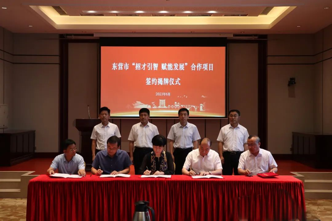 为助力东营市深入推进“招才引智”工作,促进地方教育事业高质量发展,6月21日,山东师范大学外国语学院、省派驻东营市“四进”工作总队及东营市工商联共同举行东营市“招才引智 赋能发展”合作项目签约揭牌仪式。省派驻东营市“四进”工作总队纪检副总队长沈文军,山东师范大学外国语学院党委书记岳希亮,院长王卓,东营市委统战部副部长、市工商联党组书记、常务副主席李增明等参加活动。