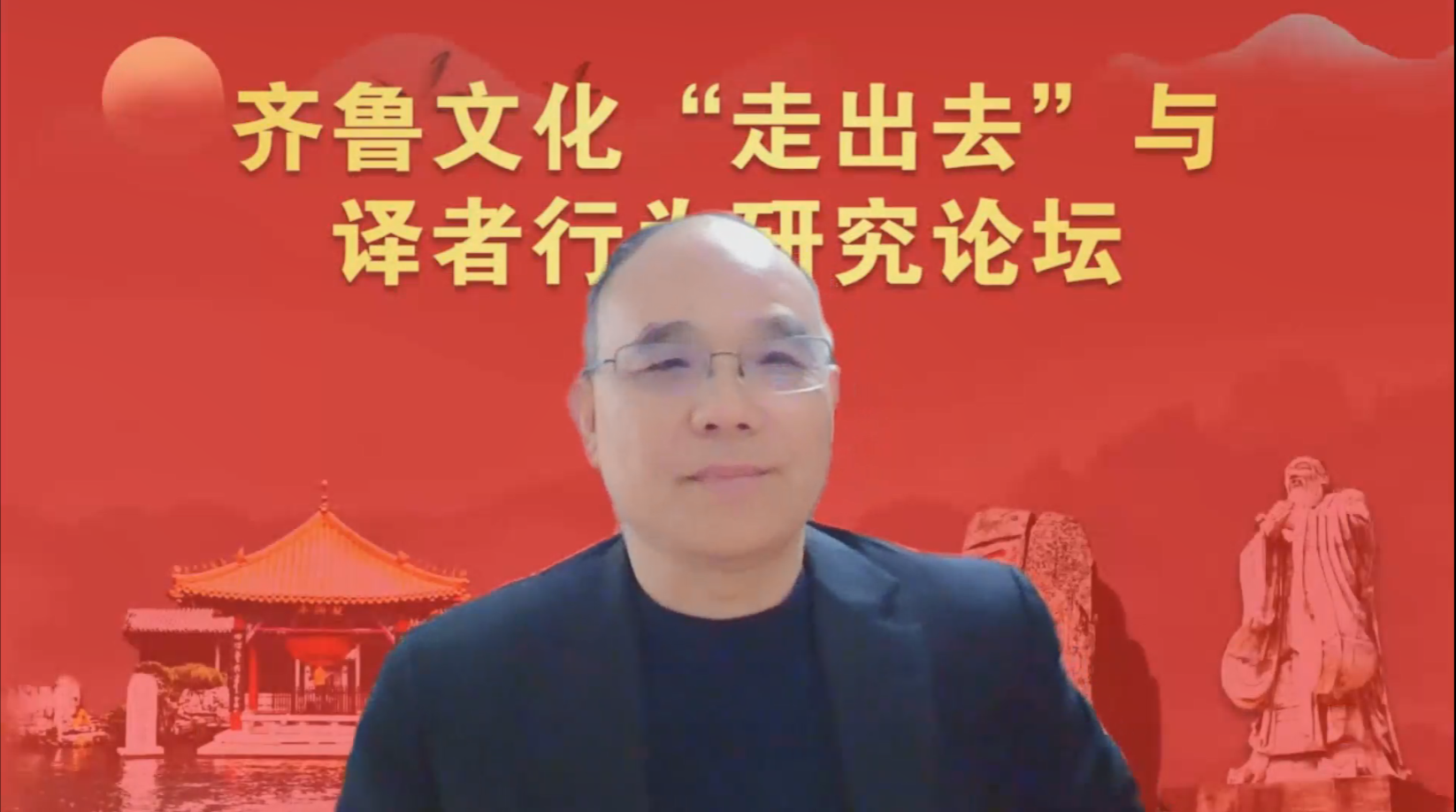 许钧教授在线上致辞中对论坛的召开和“山东文学翻译与国际传播研究中心”的成立表示热烈祝贺,他从厚植文学翻译基础、把握文学翻译历史、探究翻译生成全过程、深入研究翻译主体等4个方面对论坛主题进行了深入思考,并强调了译者在中国翻译史中的重要作用。