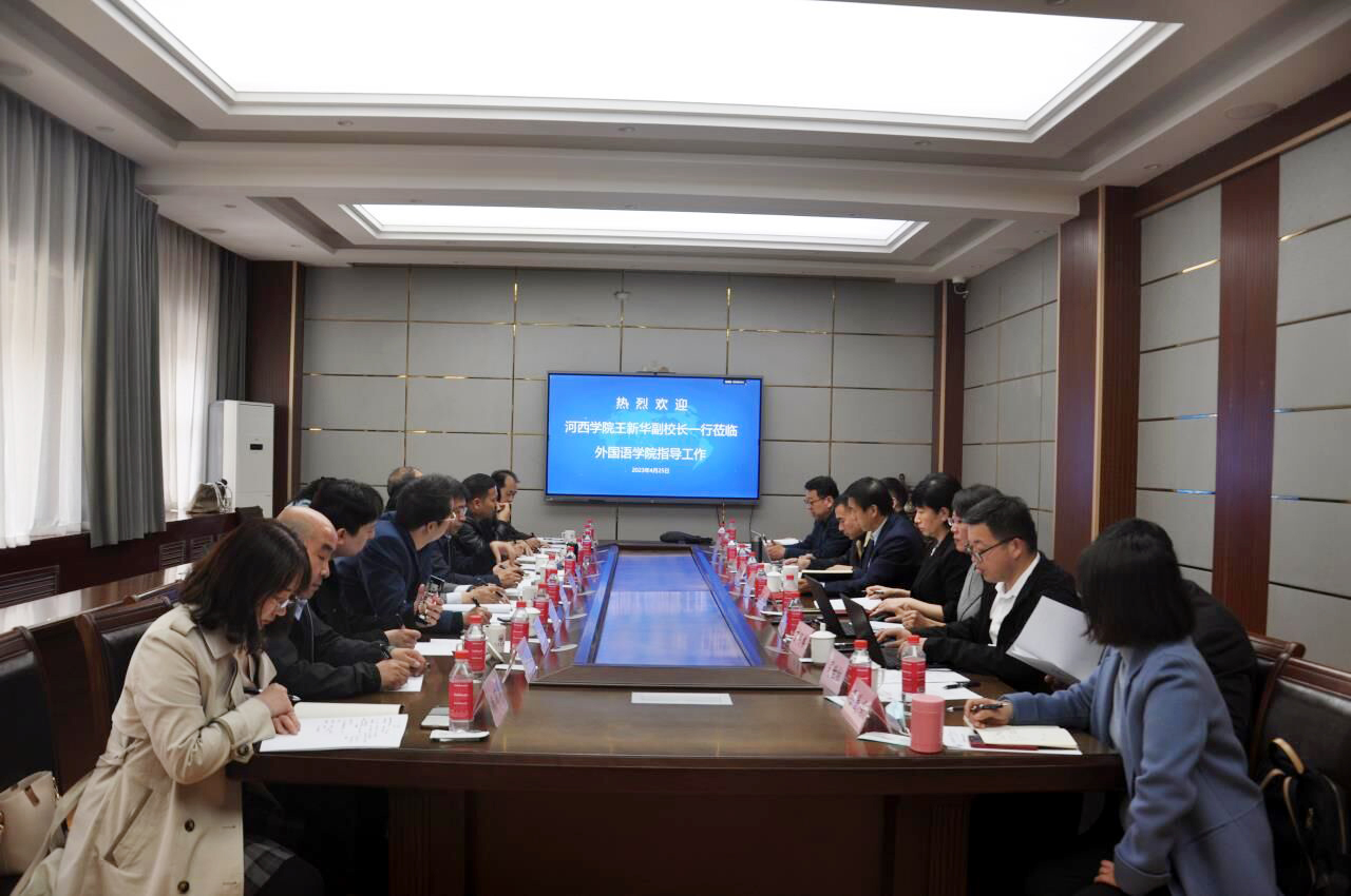 2023年4月25日,河西学院挂职副校长王新华一行来我院走访座谈。座谈在文渊楼A区313会议室进行,河西学院挂职副校长王新华,河西学院教学评估督导中心主任王丁宏、办公室主任姜丽丽,文学院副院长党万生、专业负责人李贵生,数学与统计学院副院长王学忠,化学化工学院副院长石彦龙、专业负责人禹兴海,外国语学院原院长董家丽、专业负责人李建新、团委书记杨丽萍,山东师范大学外国语学院党委书记岳希亮、院长王卓、副院长陶业涛、王金娥、葛云锋,英语系主任刘震,学工办主任、团委书记司世牧,《山东外语教学》编辑部副主编杨彬,教师教学发展中心副主任丁同楼、岳爱峰老师、乔伊老师参会。座谈会由岳希亮主持。