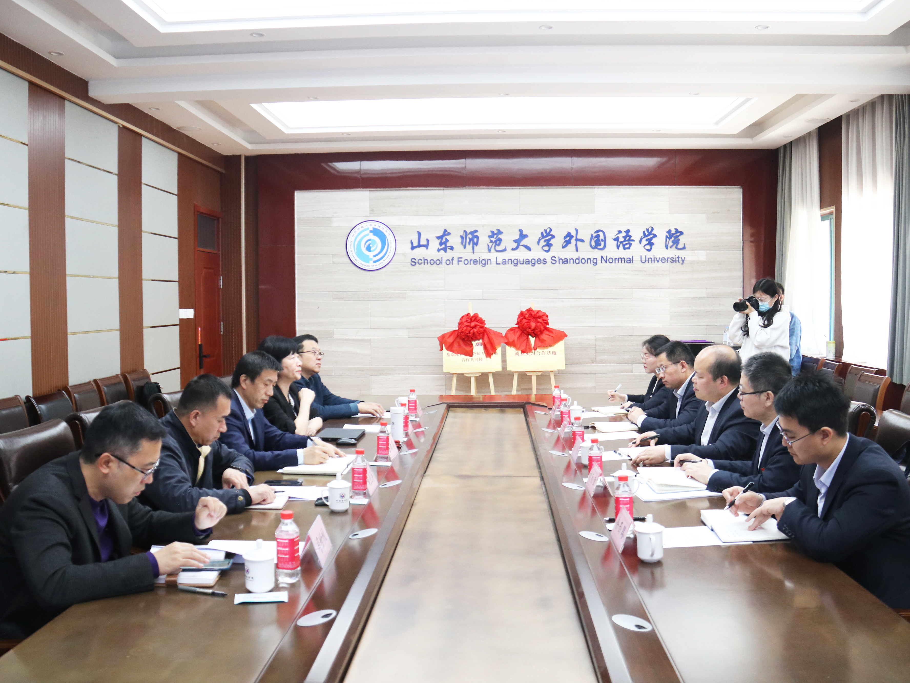 此次合作洽谈取得了丰硕成果,双方签署了大学生就业实习基地合作协议,并举行了“就业实习合作基地”“基础教育外语教师专业发展合作共同体”揭牌仪式。