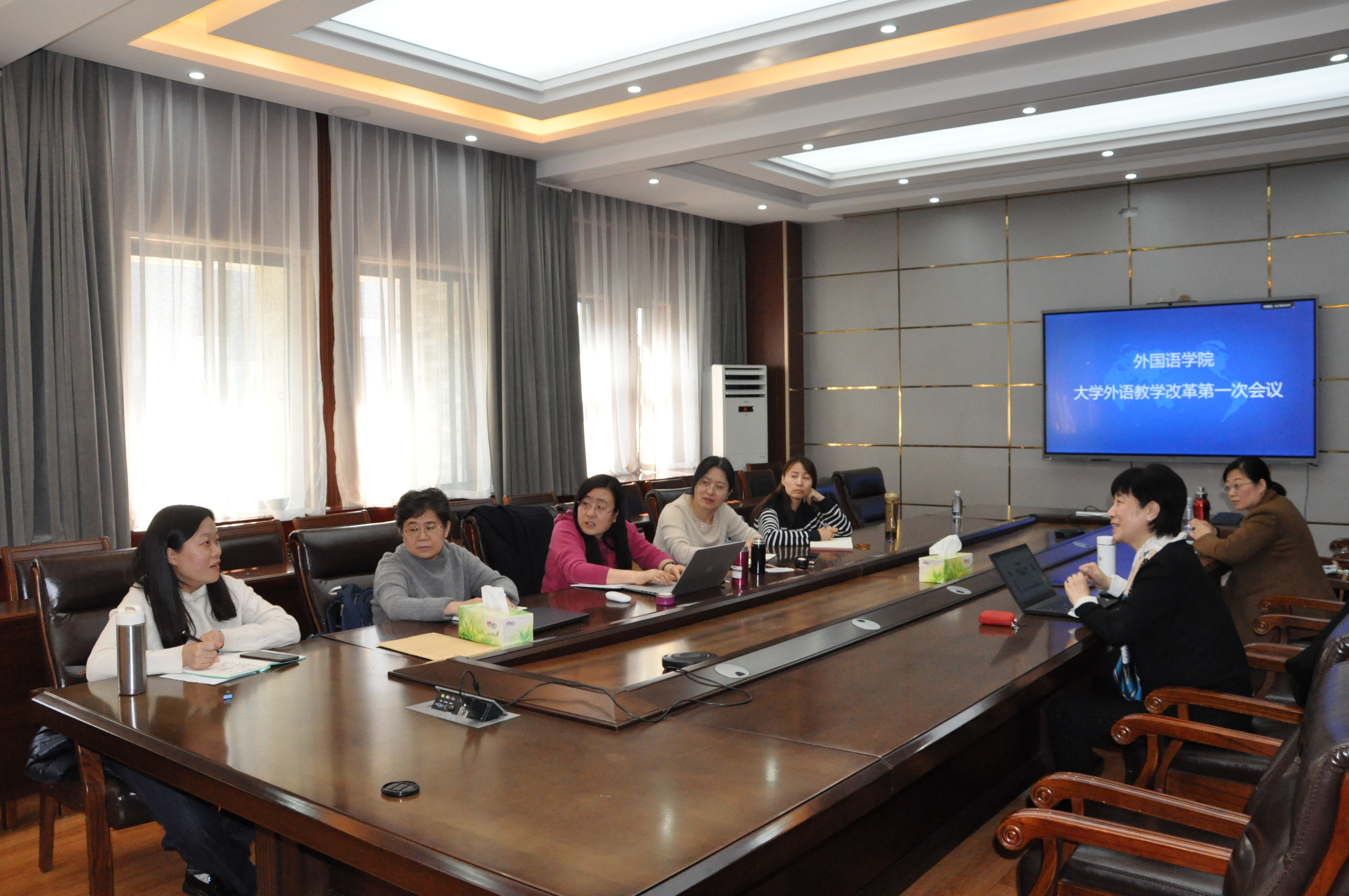 2月27日下午,外国语学院大外部在长清湖校区文渊楼A区313会议室举行大学外语教学改革研讨会,王卓院长、胡艳玲教授及大外部负责人和骨干教师参会,会议由王卓院长主持。