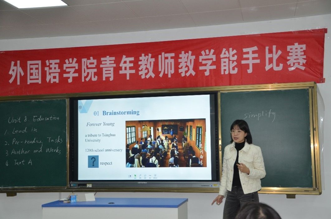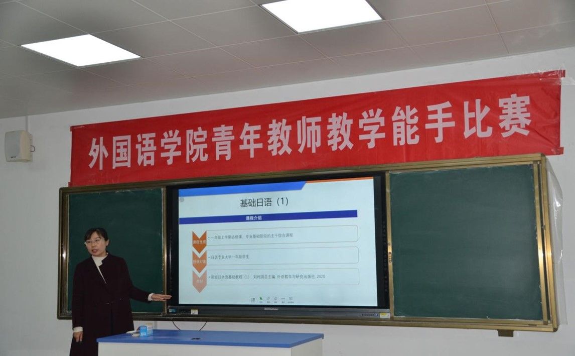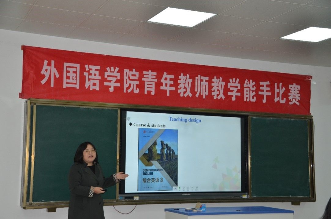 为进一步强化外国语学院青年教师教学基本功,促进其专业化发展,激发其教学激情与教学活力,为教师提供一个相互学习、相互交流、相互切磋的平台,提升教师的业务素质,外国语学院于11月22日下午在长清湖校区B540举办了学院青年教师教学能手比赛。此次院级比赛选手为来自英语、日语、朝鲜语专业的四位青年教师,学院陶业涛副院长、校级教学督导胡艳玲教授、院级教学督导组组长蒋斌副教授及各系部主任等出席此次活动。活动由王金娥副院长主持。