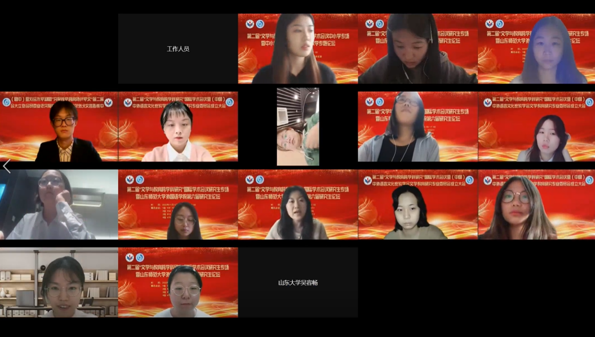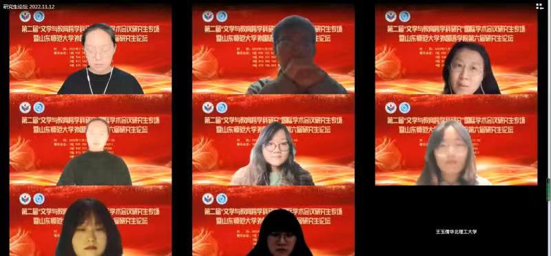 11月12日,山东师范大学外国语学院第六届研究生论坛在我院成功举办。在此次论坛中,来自北京大学、南京大学、中国人民大学、中国科学院大学、山东大学、北京外国语大学、上海外国语大学、西北工业大学、中国海洋大学、贵州大学等全国高校的研究生60余人齐聚云端,分享了自己的学术研究成果。