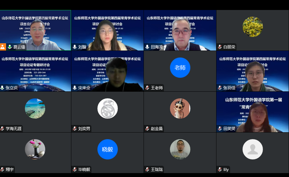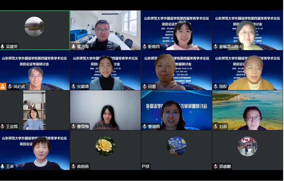 10月18日晚,外国语学院第四届常青学术论坛“项目论证专题研讨会”于腾讯会议在线平台成功举办。本次论坛由山东师范大学外国语学院主办,《山东外语教学》编辑部协办。