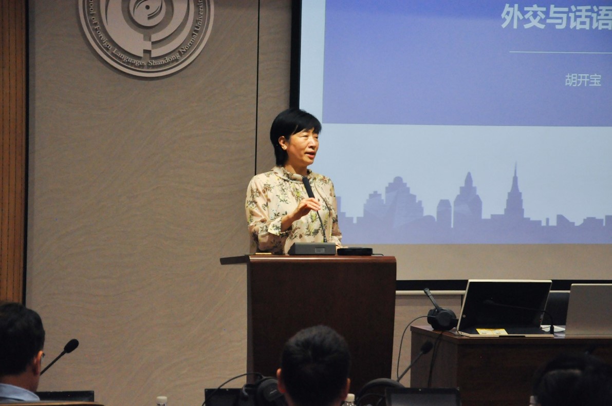 首先,胡开宝教授运用通俗易懂的案例,对“什么是外交”进行了界定,并从外交主体、外交范围、外交方式三个方面列举了外交的不同类别,详细讲述了外交的四大功能。接着,胡开宝教授对“什么是话语”进行了界定。他介绍了话语的社会、结构、语义特征,并依据话语的形式、主体、领域、主题、体裁对话语进行了详细的分类,还提出并解释了话语的三个功能:参与功能、镜像功能、建构功能。