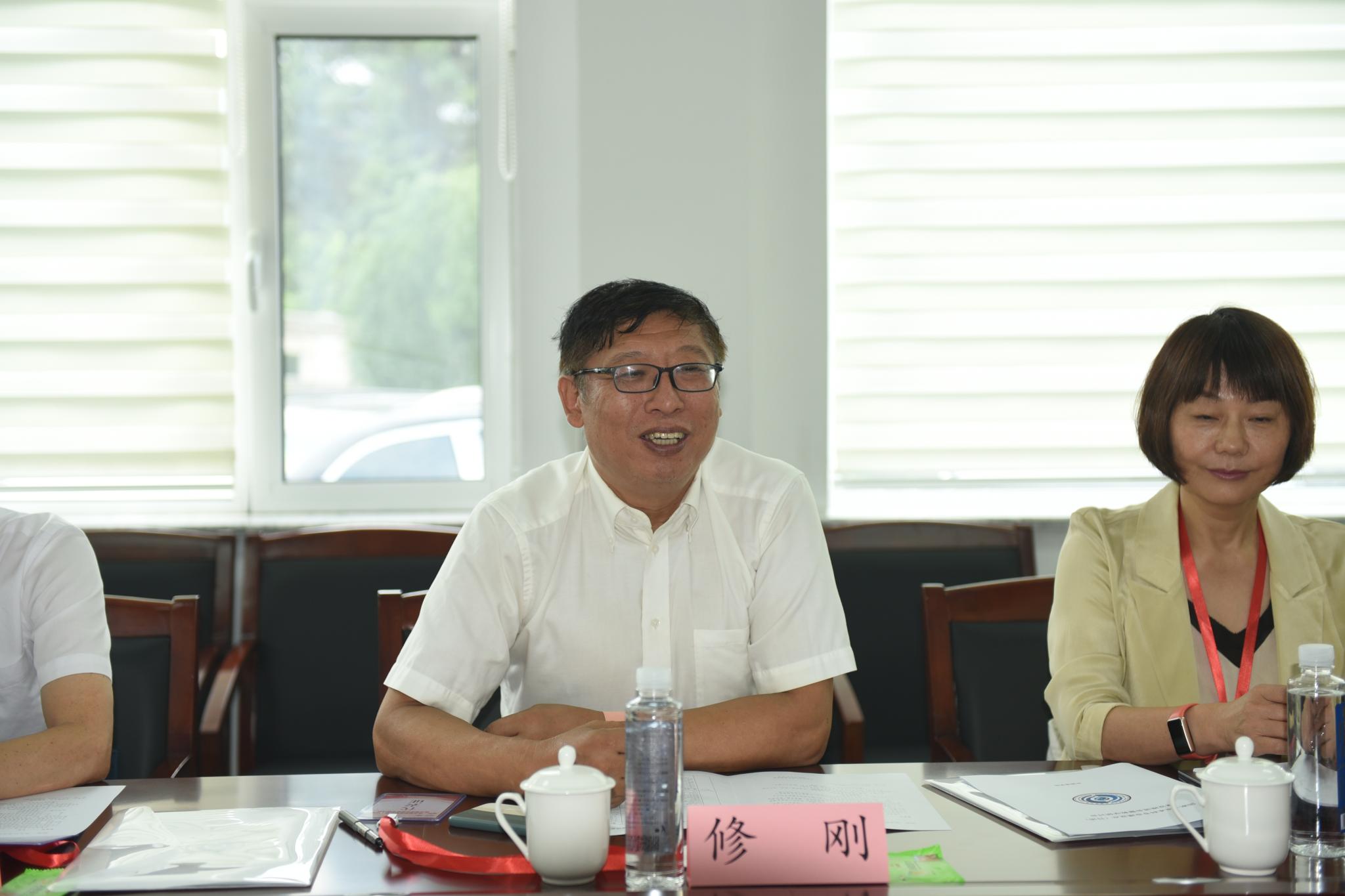 接下来是修刚主任致辞。修刚主任在致辞中对外语专业目前的现状提出了以下的四点思考:首先,要考虑大众化教育,我们培养的学生既要能适应外语教学,也能够适应其他工作;其次,全国目前有525所高校开设日语专业,其中入选国家一流本科专业的高校有64所,这就要求我们的一流专业建设,不仅要做好自己的专业建设,还要在全国的专业建设中起到良好的示范作用;第三,将课程思政与外语教育紧密结合是一个重要的课题,如何运用外语教学本身提高学生的素养,这也是我们要思考的重要问题;第四,外语教育要注重工具性与人文性相结合,一流专业与一流学科建设相结合。同时他表示,山东师范大学日语一流专业建设成果显著,但路还很长。在进行教育改革上最重要的一点是,从“老师教”转向“学生学”,在教学过程中要注意培养学生的跨文化交际与自我学习能力。修教授在致辞最后表示,将全力支持我校日语专业做好一流专业建设工作。王卓院长简要汇报了目前外院的工作成果,并表示,我校的发展方向与修刚主任提出的发展路径相一致,并感谢修教授对我们的支持与鼓励。