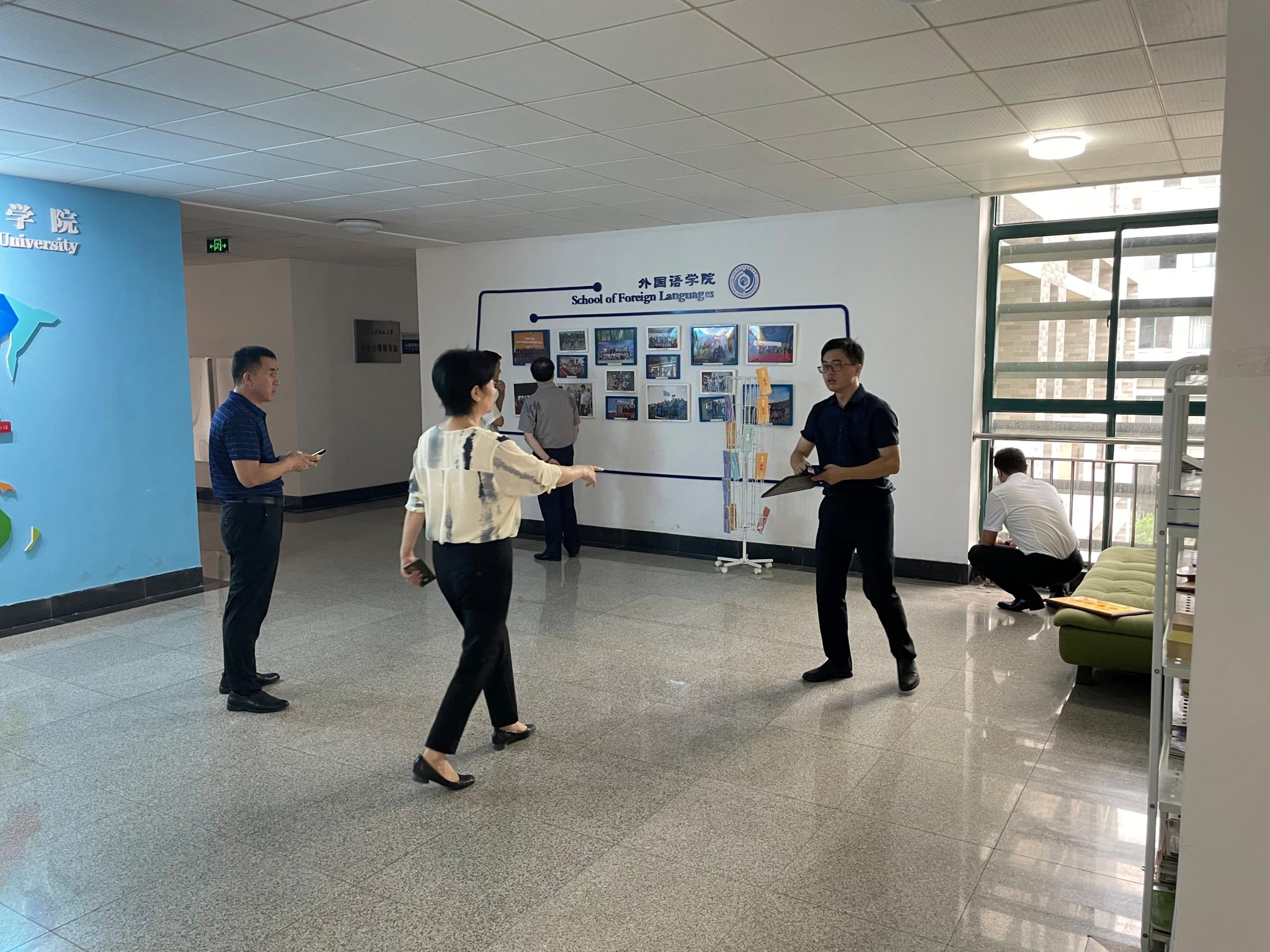 前期,8月21日,学院行政管理和辅导员全部到岗准备新学期开学工作,学院党政领导班子成员集体深入一线长清湖校区文渊楼B区教学区和A区各办公室等场所,检查学生教室、教师休息室、学生自习场所、教职工办公场所设备运行、环境卫生、疫情防控等措施落实到位情况。并召开外国语学院党政联席会议研究部署新学期工作情况,确保了新学期开学各项工作顺利开展。