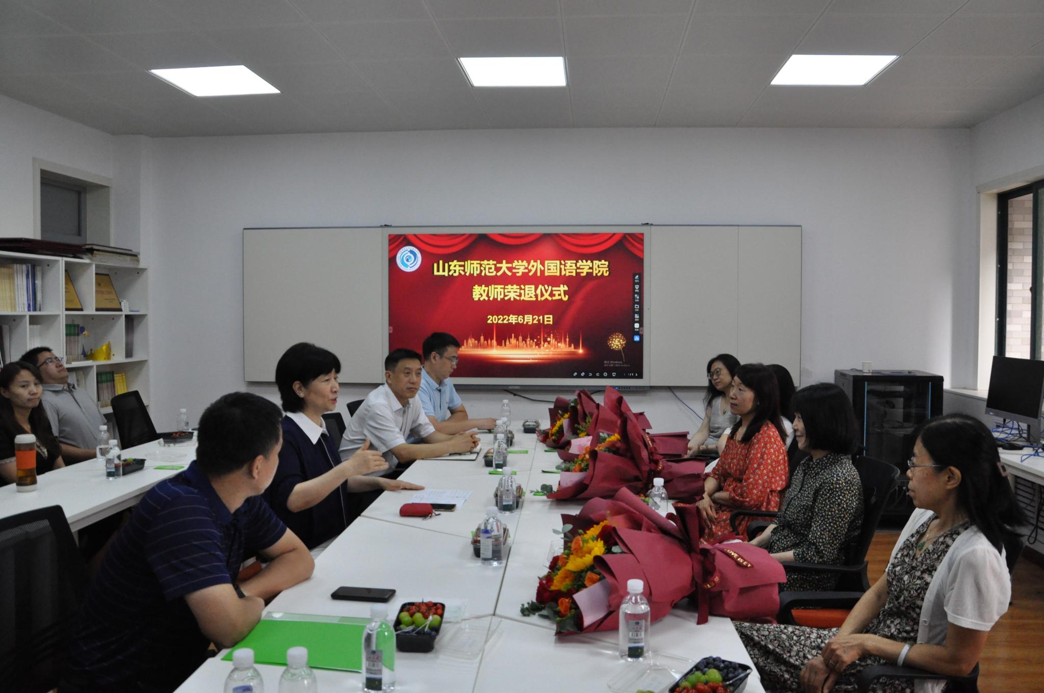 2022年6月21日下午,外国语学院在学院349会议室隆重举行教师荣退仪式。退休教师代表史闽瑞、颜红、李敏、袁磊,学院党政领导和部分系部主任、教师代表参加仪式。仪式由学院工会主席侯青龙主持。